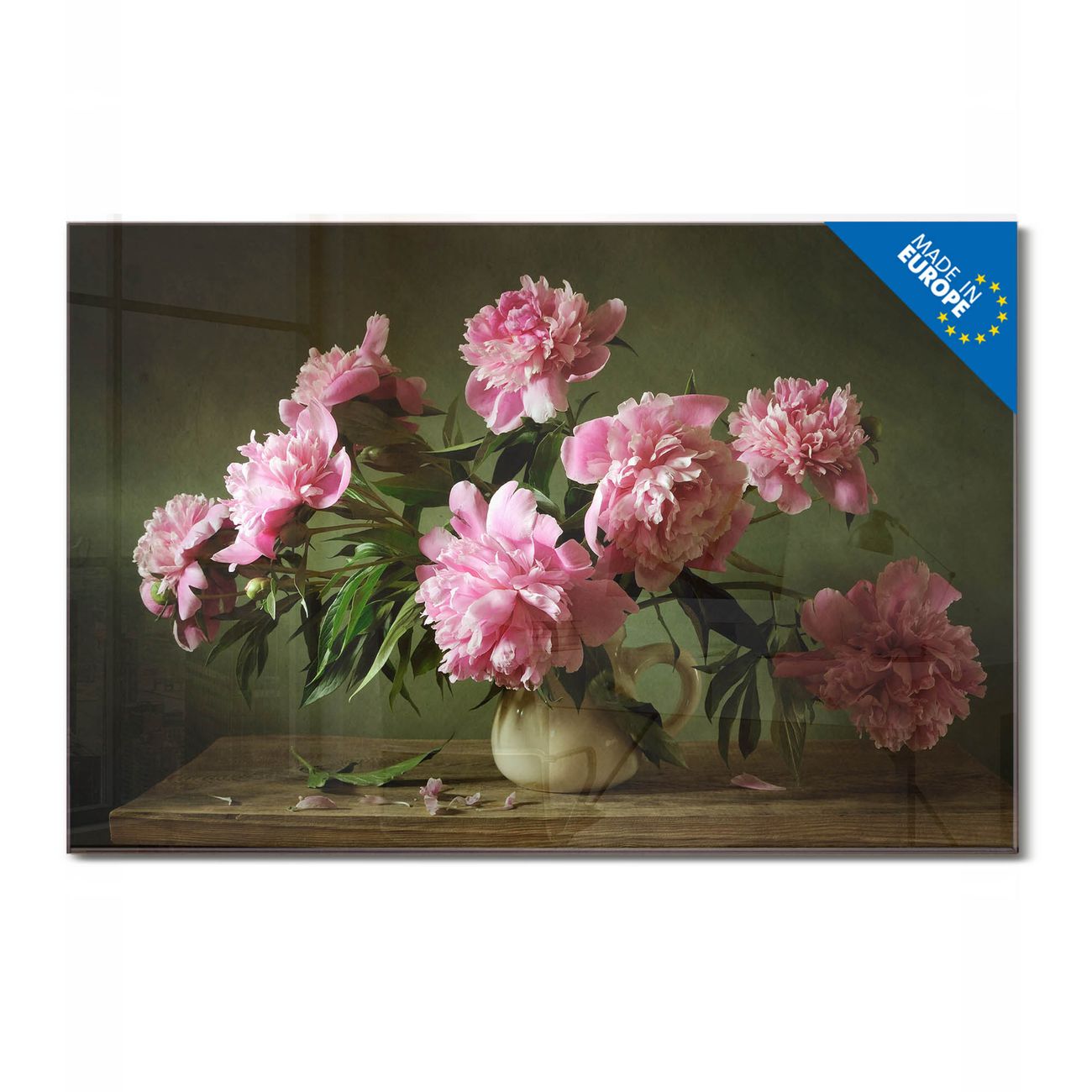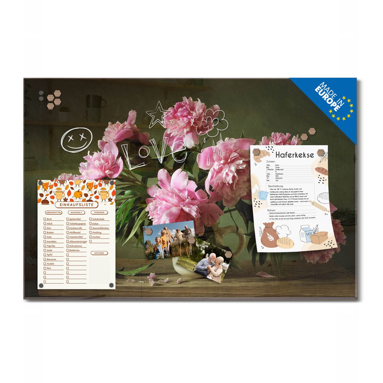 Glas Magnettafel im Querformat Motiv Pinke Pfingstrosen