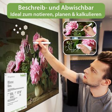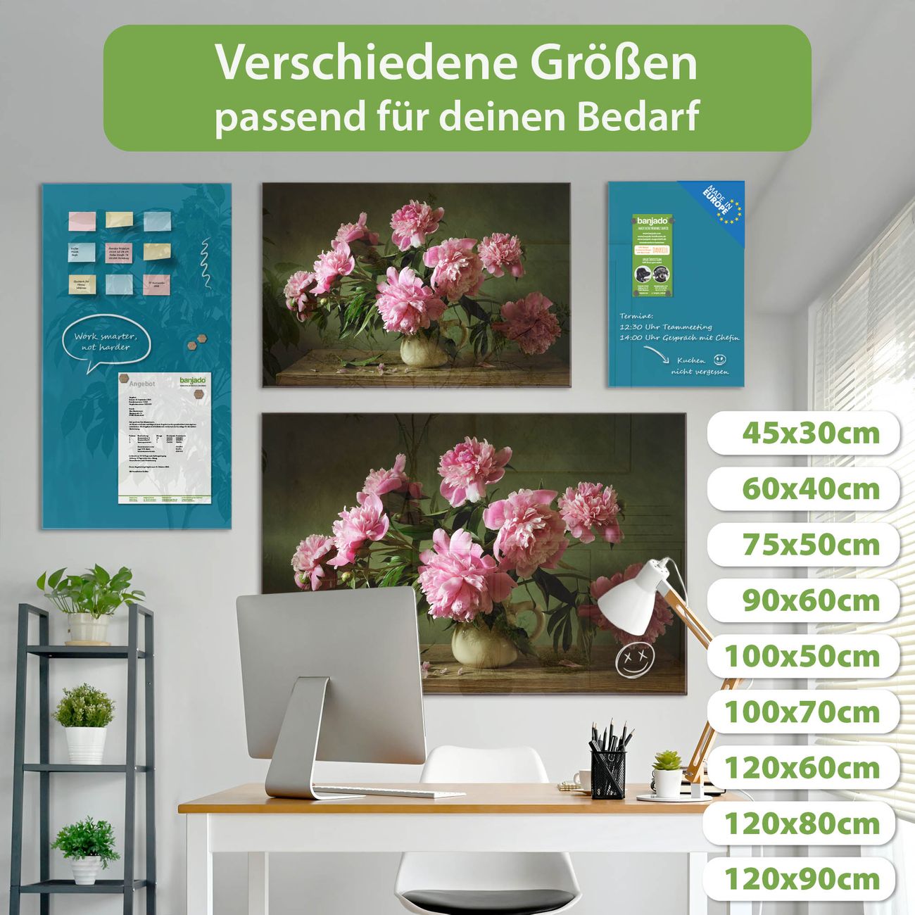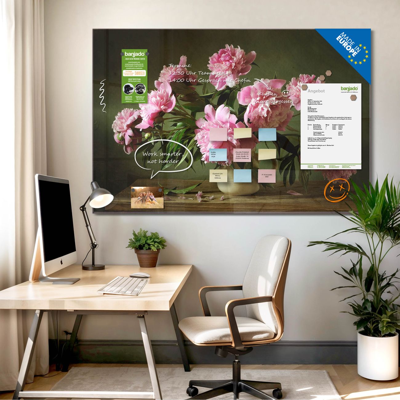 Die banjado Glas Magnettafel mit dem Motiv Motiv Pinke Pfingstrosen verbindet Funktionalität mit Stil. Sie ersetzt das Zettelchaos durch klare Strukturen und bringt dabei eine warme, natürliche Atmosphäre in Ihr Zuhause. Ob im Büro, in der Küche oder im Eingangsbereich - dieses Design-Board zieht Blicke an und sorgt für Ordnung mit Charakter.