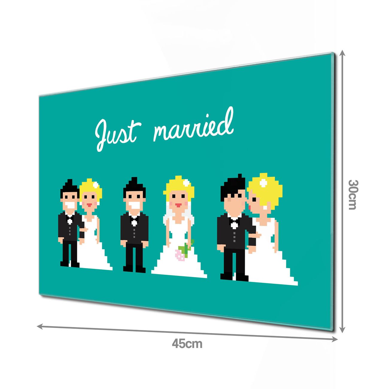 Glas Magnettafel im Querformat Pixel Hochzeit