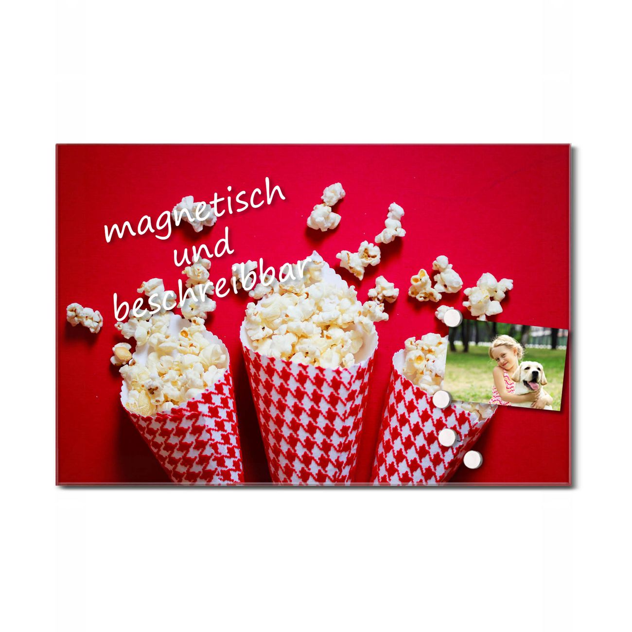 Glas Magnettafel im Querformat Popcorntüten