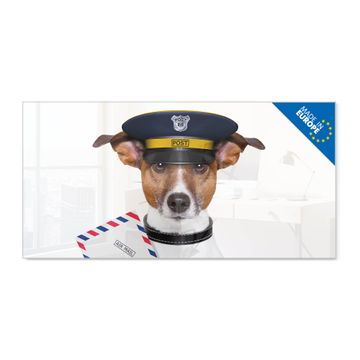 Glas Magnettafel im Querformat Motiv Postbote Jack Russel