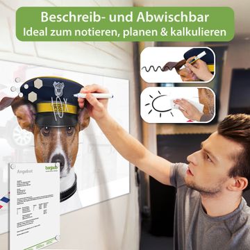 Ein Stück Design, das Ihren Alltag organisiert. Schreiben, heften, inspirieren - alles an einem Ort. Qualität, die man spürt. Montage leicht gemacht. Handwerk mit Herz - veredelt in Sachsen. Einzigartiges Design mit Motiv Motiv Postbote Jack Russel Beschreibbare Glasoberfläche, leicht zu reinigen Starke Magnetkraft durch Stahlrückwand Inklusive 4 Neodym-Magneten Flexible Montageoptionen Handveredelt in Sachsen - Qualität, die bleibt