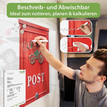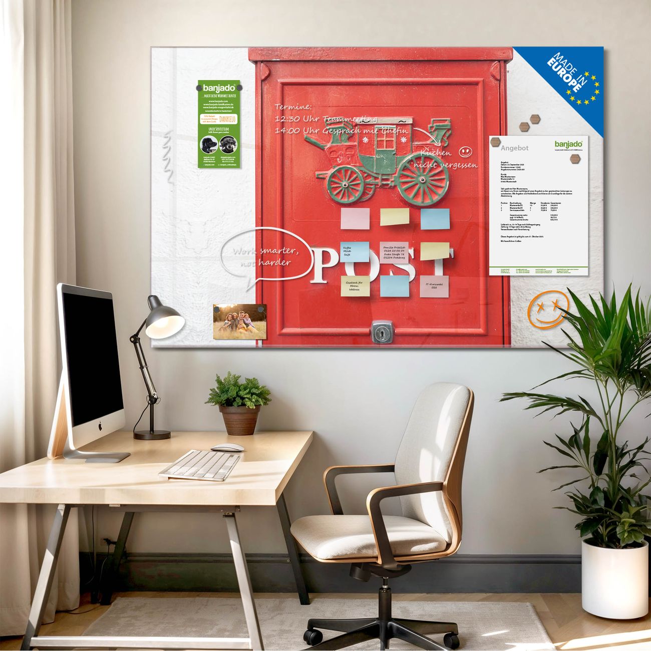 Die banjado Glas Magnettafel mit dem Motiv Motiv Postkasten Nostalgie verbindet Funktionalität mit Stil. Sie ersetzt das Zettelchaos durch klare Strukturen und bringt dabei eine warme, natürliche Atmosphäre in Ihr Zuhause. Ob im Büro, in der Küche oder im Eingangsbereich - dieses Design-Board zieht Blicke an und sorgt für Ordnung mit Charakter.
