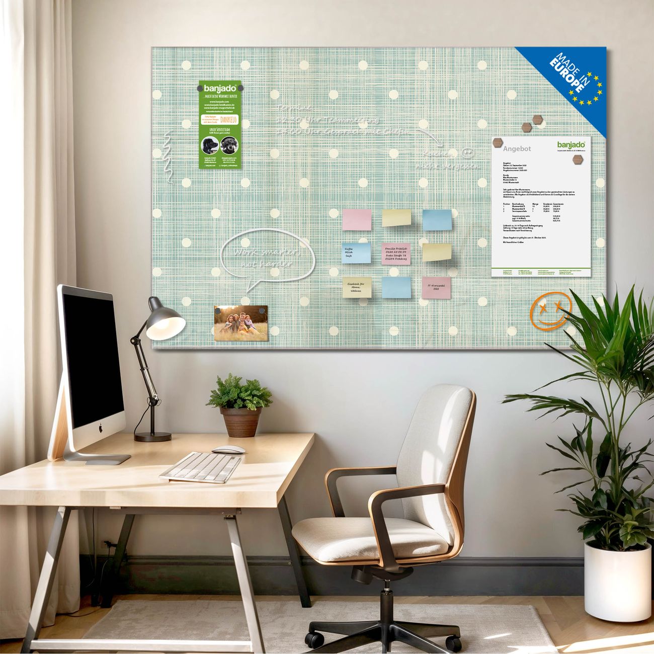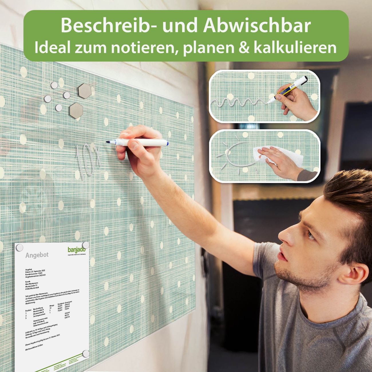 Die banjado Glas Magnettafel mit dem Motiv Motiv Punkte Lindgrün verbindet Funktionalität mit Stil. Sie ersetzt das Zettelchaos durch klare Strukturen und bringt dabei eine warme, natürliche Atmosphäre in Ihr Zuhause. Ob im Büro, in der Küche oder im Eingangsbereich - dieses Design-Board zieht Blicke an und sorgt für Ordnung mit Charakter.