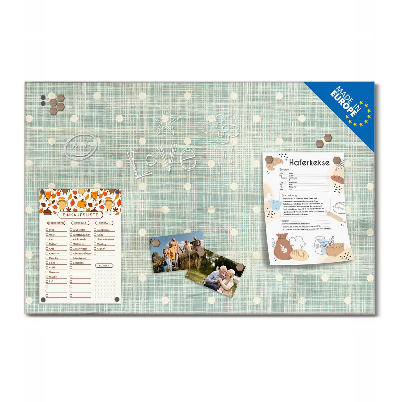 Ein Stück Design, das Ihren Alltag organisiert. Schreiben, heften, inspirieren - alles an einem Ort. Qualität, die man spürt. Montage leicht gemacht. Handwerk mit Herz - veredelt in Sachsen. Einzigartiges Design mit Motiv Motiv Punkte Lindgrün Beschreibbare Glasoberfläche, leicht zu reinigen Starke Magnetkraft durch Stahlrückwand Inklusive 4 Neodym-Magneten Flexible Montageoptionen Handveredelt in Sachsen - Qualität, die bleibt