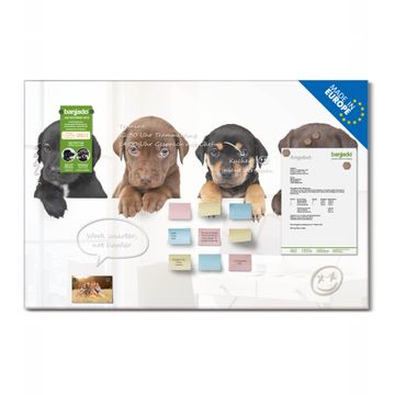 Die banjado Glas Magnettafel mit dem Motiv Motiv Puppies verbindet Funktionalität mit Stil. Sie ersetzt das Zettelchaos durch klare Strukturen und bringt dabei eine warme, natürliche Atmosphäre in Ihr Zuhause. Ob im Büro, in der Küche oder im Eingangsbereich - dieses Design-Board zieht Blicke an und sorgt für Ordnung mit Charakter.
