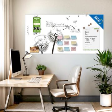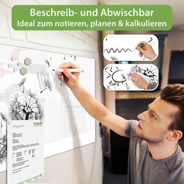Die banjado Glas Magnettafel mit dem Motiv Motiv Pusteblume 2 verbindet Funktionalität mit Stil. Sie ersetzt das Zettelchaos durch klare Strukturen und bringt dabei eine warme, natürliche Atmosphäre in Ihr Zuhause. Ob im Büro, in der Küche oder im Eingangsbereich - dieses Design-Board zieht Blicke an und sorgt für Ordnung mit Charakter.