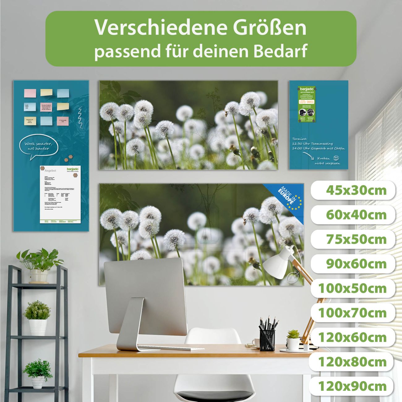 Jede Glas Magnettafel wird in unserer Werkstatt von Hand gefertigt und sorgfältig geprüft. So erhalten Sie ein echtes Qualitätsprodukt, das Funktion und Ästhetik perfekt vereint.?? Warum banjado?