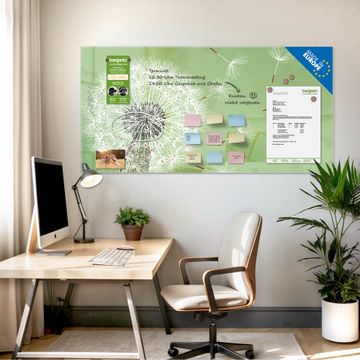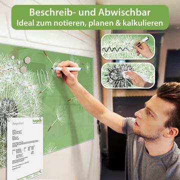 Die banjado Glas Magnettafel mit dem Motiv Motiv Pusteblume 3 verbindet Funktionalität mit Stil. Sie ersetzt das Zettelchaos durch klare Strukturen und bringt dabei eine warme, natürliche Atmosphäre in Ihr Zuhause. Ob im Büro, in der Küche oder im Eingangsbereich - dieses Design-Board zieht Blicke an und sorgt für Ordnung mit Charakter.