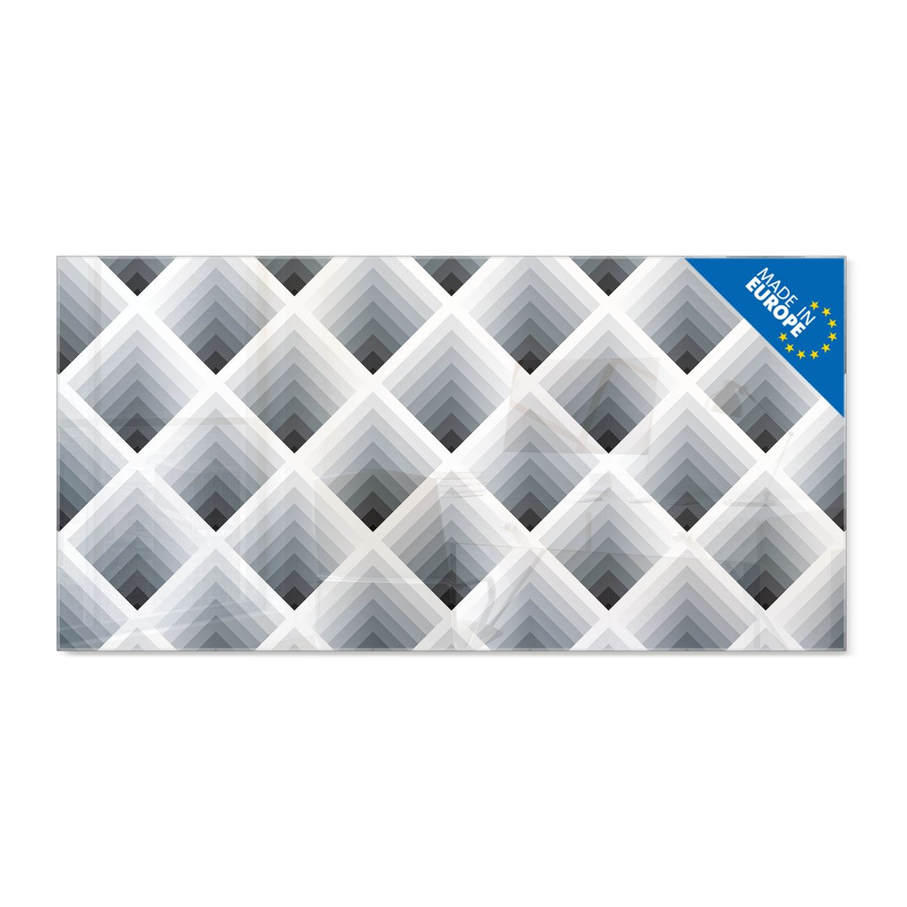 Glas Magnettafel im Querformat Motiv Raster 3D Grau