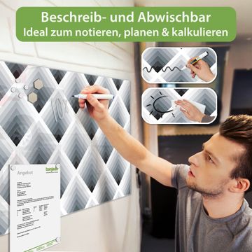 Die banjado Glas Magnettafel mit dem Motiv Motiv Raster 3D Grau verbindet Funktionalität mit Stil. Sie ersetzt das Zettelchaos durch klare Strukturen und bringt dabei eine warme, natürliche Atmosphäre in Ihr Zuhause. Ob im Büro, in der Küche oder im Eingangsbereich - dieses Design-Board zieht Blicke an und sorgt für Ordnung mit Charakter.