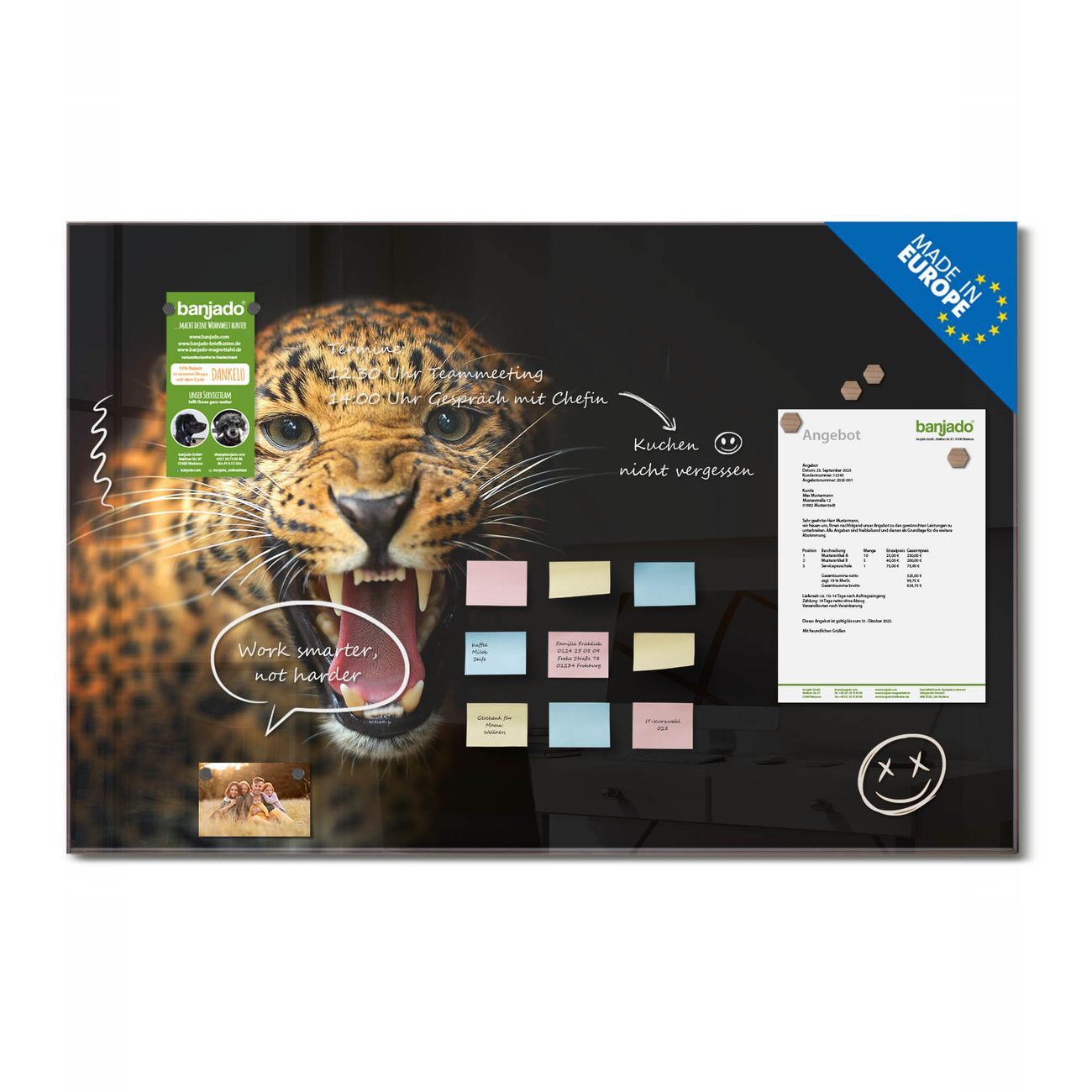 Die banjado Glas Magnettafel mit dem Motiv Motiv Raubkatze verbindet Funktionalität mit Stil. Sie ersetzt das Zettelchaos durch klare Strukturen und bringt dabei eine warme, natürliche Atmosphäre in Ihr Zuhause. Ob im Büro, in der Küche oder im Eingangsbereich - dieses Design-Board zieht Blicke an und sorgt für Ordnung mit Charakter.