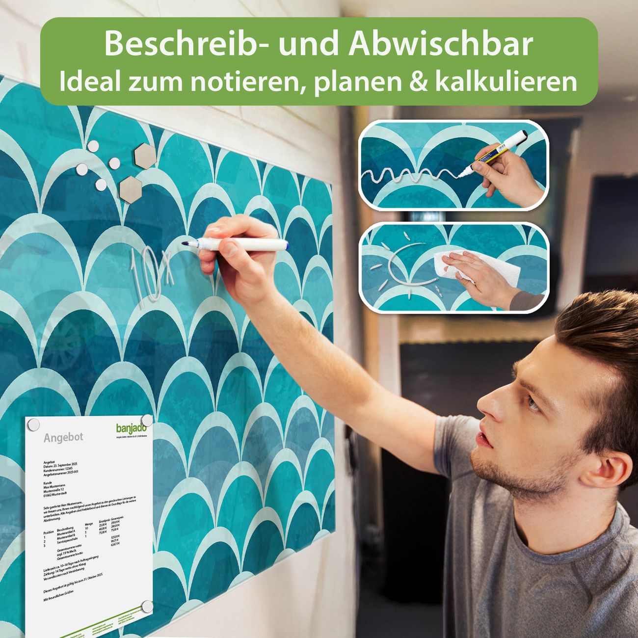 Auf der glatten Glasoberfläche lassen sich Termine, Rezepte oder Notizen ganz einfach mit Kreidestiften festhalten und rückstandslos entfernen. Starke Neodym-Magnete halten Ihre wichtigsten Erinnerungen sicher an Ort und Stelle. So entsteht Ihre ganz persönliche Ideenwand - jeden Tag neu.
