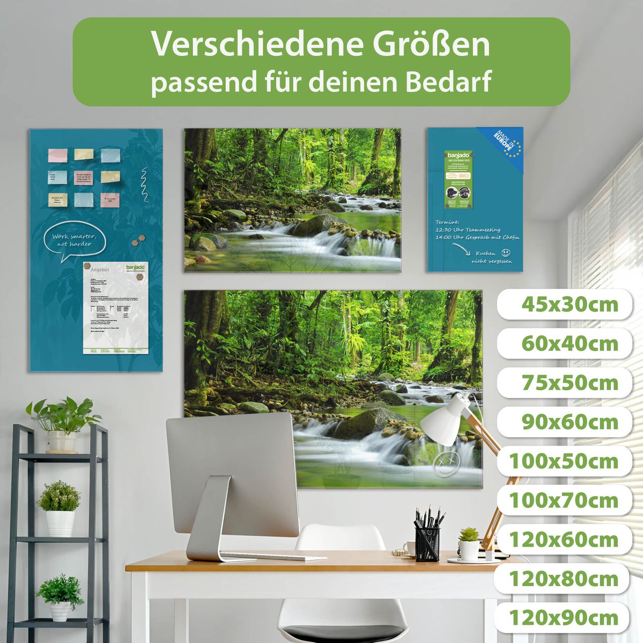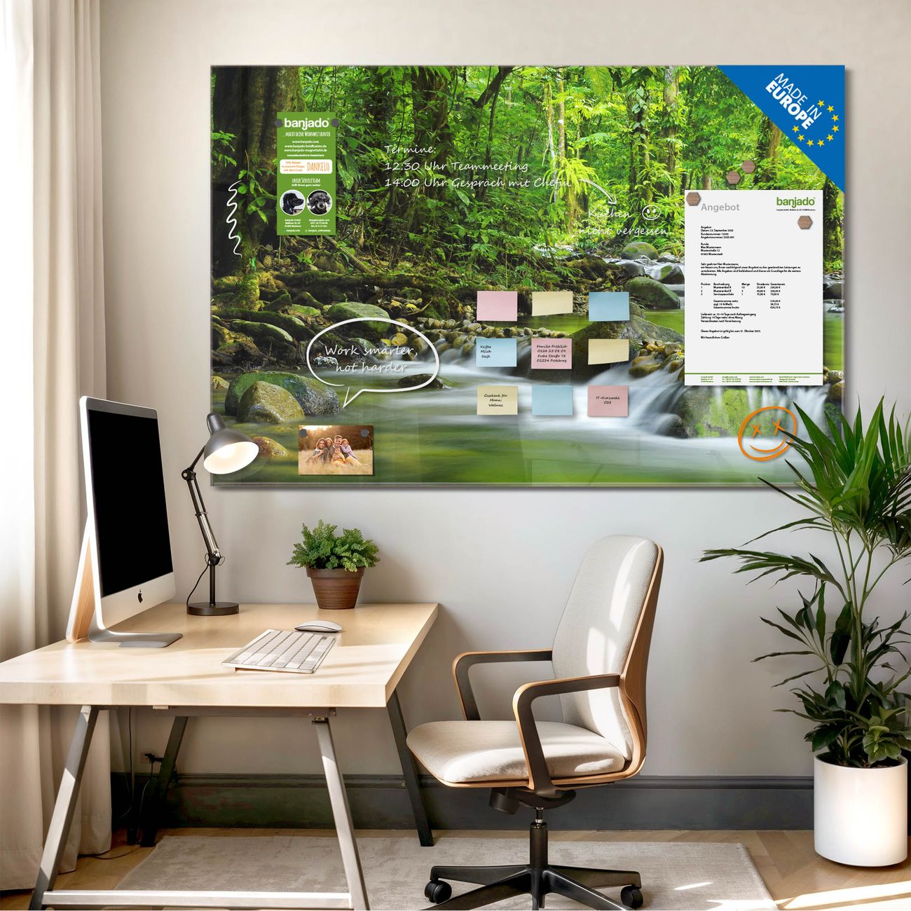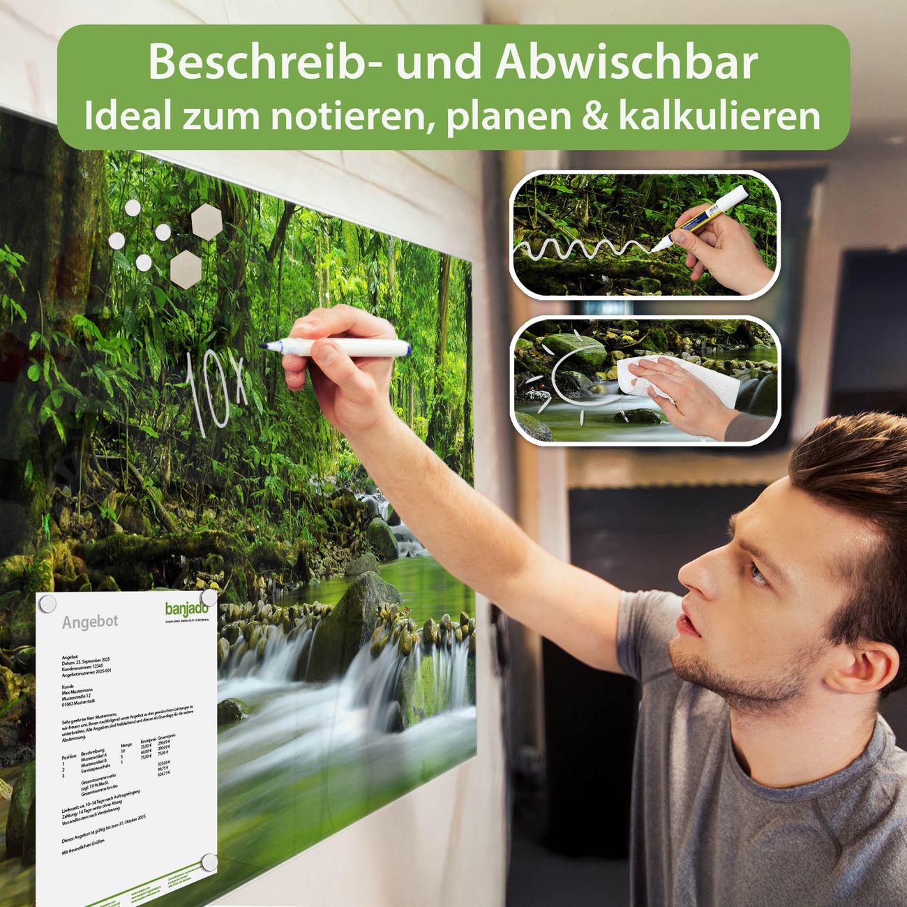 Jede Glas Magnettafel wird in unserer Werkstatt von Hand gefertigt und sorgfältig geprüft. So erhalten Sie ein echtes Qualitätsprodukt, das Funktion und Ästhetik perfekt vereint.?? Warum banjado?