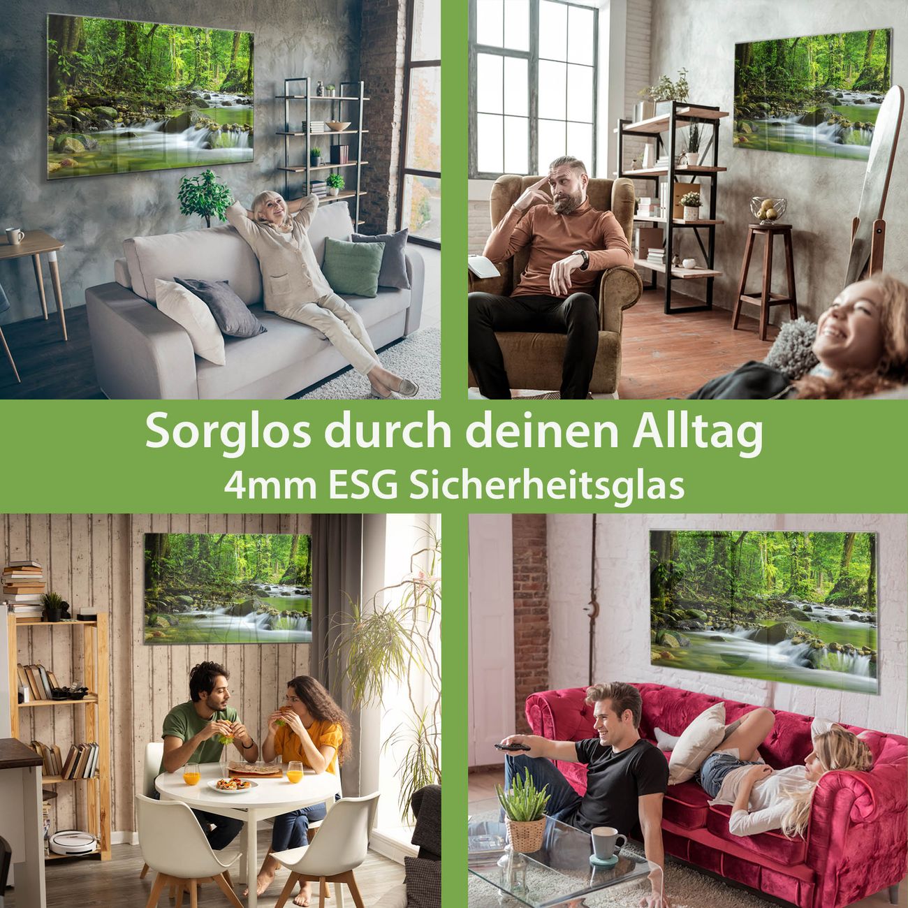 - Material: 4mm Sicherheitsglas mit Metallrückwand