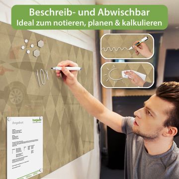 Die banjado Glas Magnettafel mit dem Motiv Motiv Rauten Metall verbindet Funktionalität mit Stil. Sie ersetzt das Zettelchaos durch klare Strukturen und bringt dabei eine warme, natürliche Atmosphäre in Ihr Zuhause. Ob im Büro, in der Küche oder im Eingangsbereich - dieses Design-Board zieht Blicke an und sorgt für Ordnung mit Charakter.