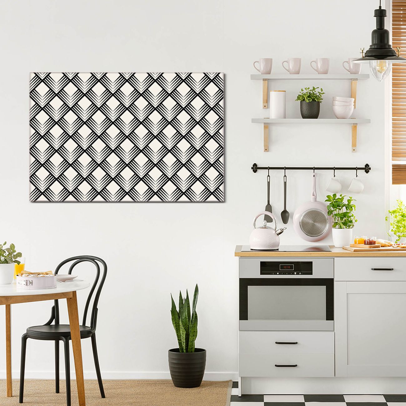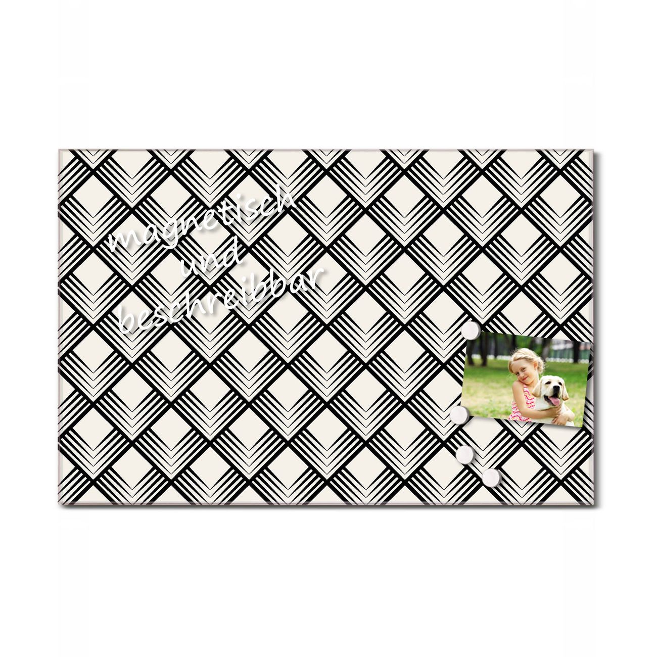 Glas Magnettafel im Querformat Rauten SW