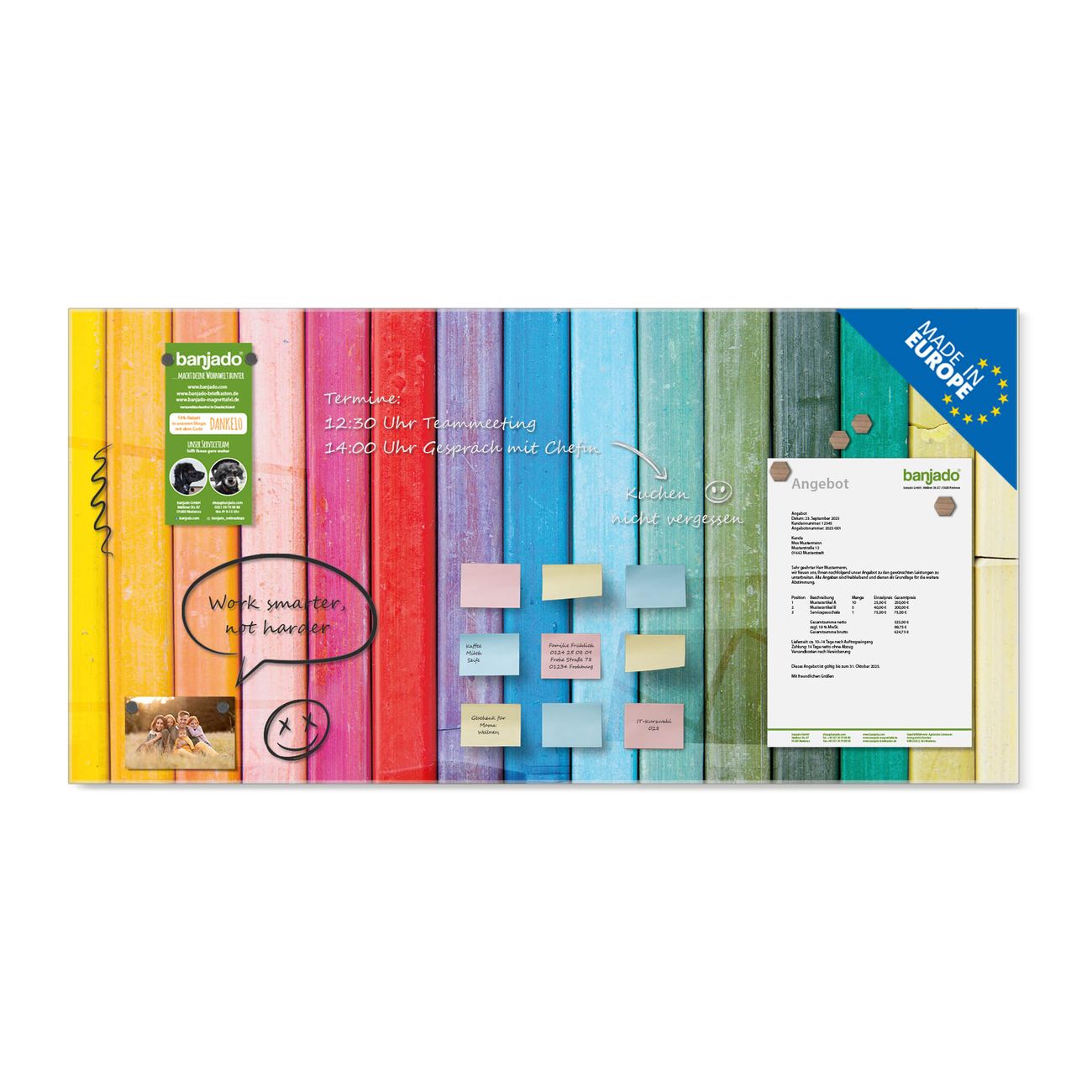 Glas Magnettafel im Querformat Motiv Regenbogenfarben
