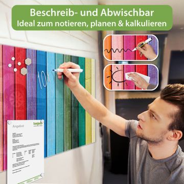 Die banjado Glas Magnettafel mit dem Motiv Motiv Regenbogenfarben verbindet Funktionalität mit Stil. Sie ersetzt das Zettelchaos durch klare Strukturen und bringt dabei eine warme, natürliche Atmosphäre in Ihr Zuhause. Ob im Büro, in der Küche oder im Eingangsbereich - dieses Design-Board zieht Blicke an und sorgt für Ordnung mit Charakter.