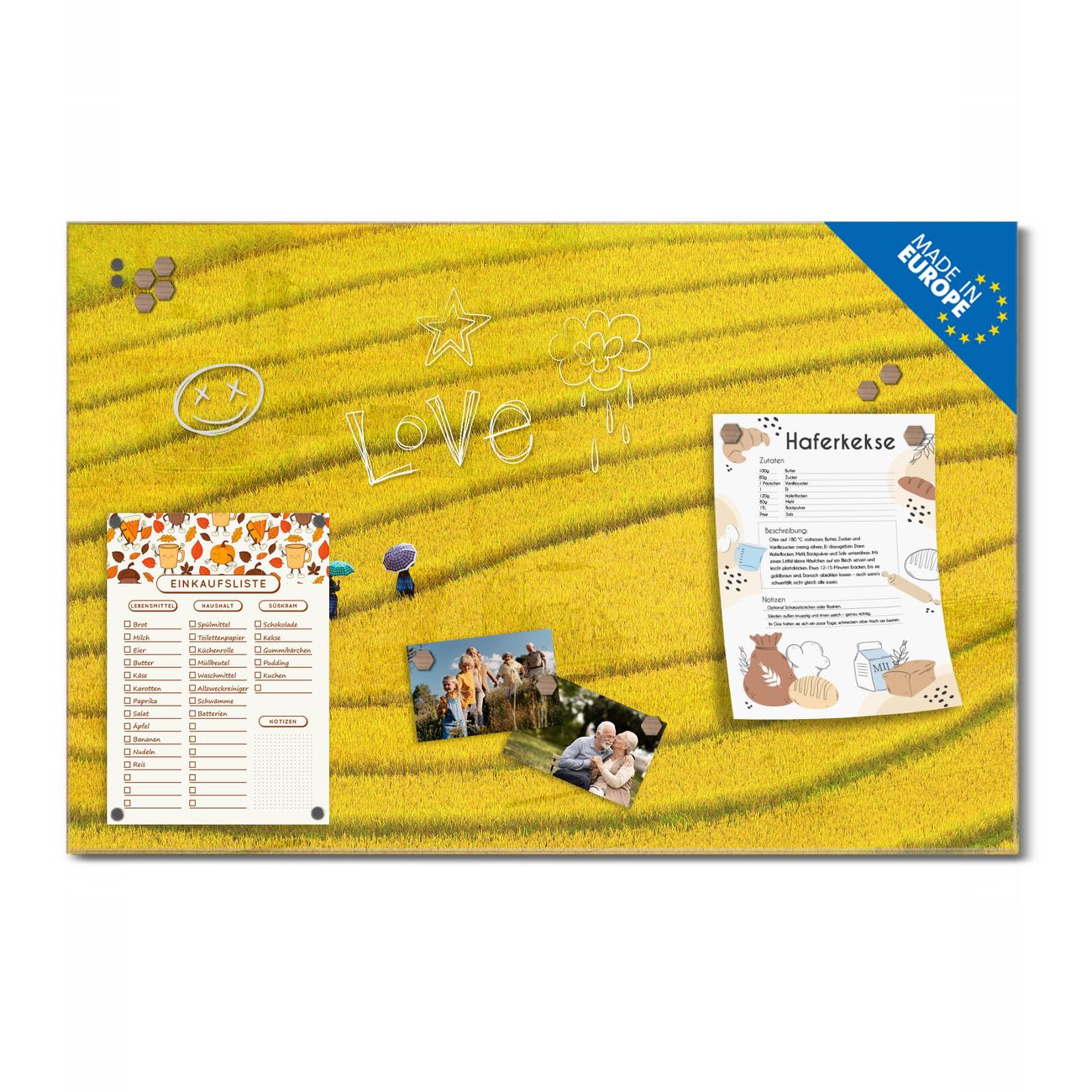 Ein Stück Design, das Ihren Alltag organisiert. Schreiben, heften, inspirieren - alles an einem Ort. Qualität, die man spürt. Montage leicht gemacht. Handwerk mit Herz - veredelt in Sachsen. Einzigartiges Design mit Motiv Motiv Reisfeld Vietnam Beschreibbare Glasoberfläche, leicht zu reinigen Starke Magnetkraft durch Stahlrückwand Inklusive 4 Neodym-Magneten Flexible Montageoptionen Handveredelt in Sachsen - Qualität, die bleibt