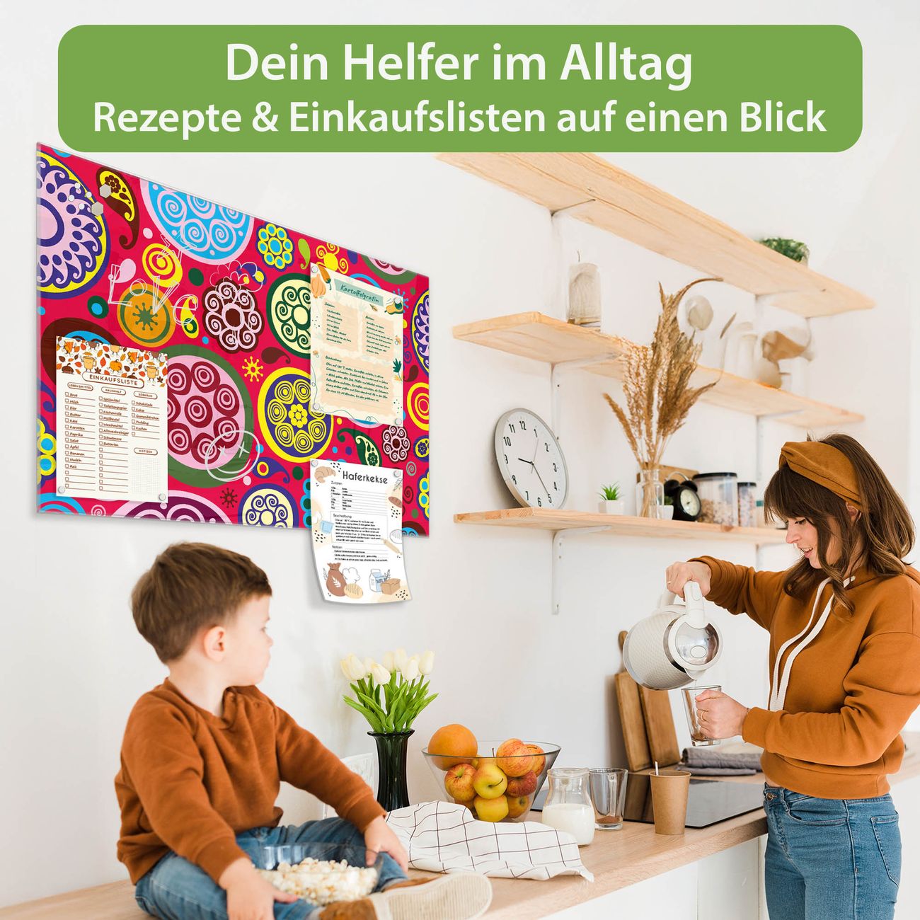Auf der glatten Glasoberfläche lassen sich Termine, Rezepte oder Notizen ganz einfach mit Kreidestiften festhalten und rückstandslos entfernen. Starke Neodym-Magnete halten Ihre wichtigsten Erinnerungen sicher an Ort und Stelle. So entsteht Ihre ganz persönliche Ideenwand - jeden Tag neu.