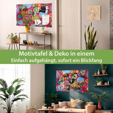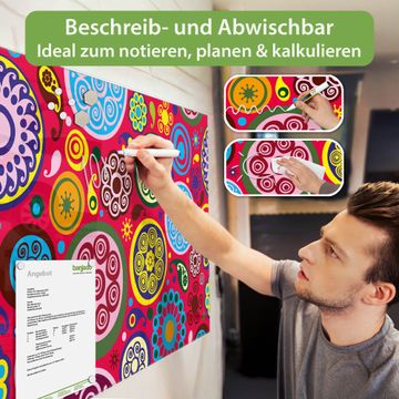 Die banjado Glas Magnettafel mit dem Motiv Motiv Retro Kreise verbindet Funktionalität mit Stil. Sie ersetzt das Zettelchaos durch klare Strukturen und bringt dabei eine warme, natürliche Atmosphäre in Ihr Zuhause. Ob im Büro, in der Küche oder im Eingangsbereich - dieses Design-Board zieht Blicke an und sorgt für Ordnung mit Charakter.