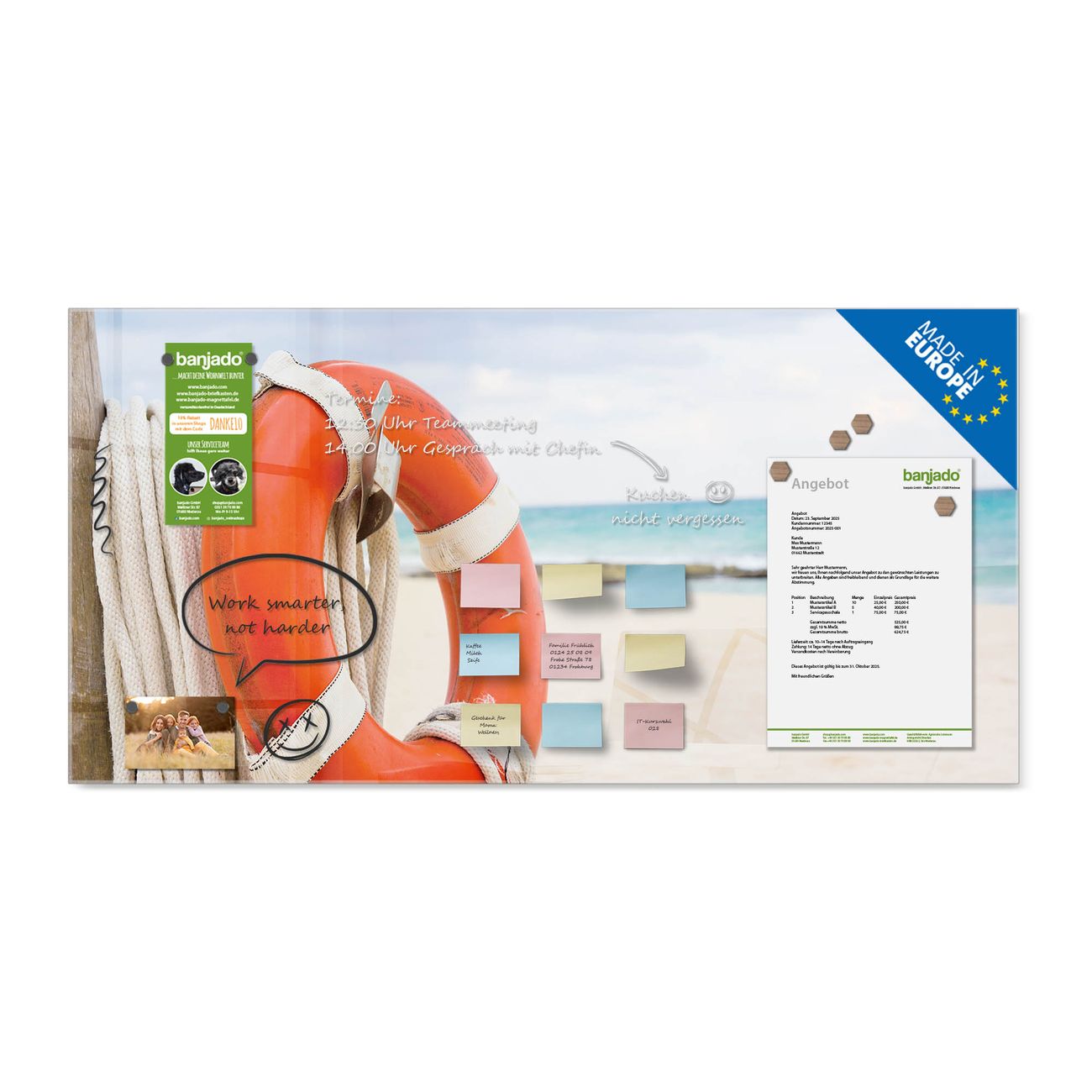 Glas Magnettafel im Querformat Motiv Roter Rettungsring