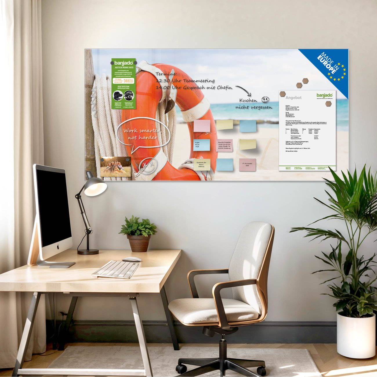 Jede Glas Magnettafel wird in unserer Werkstatt von Hand gefertigt und sorgfältig geprüft. So erhalten Sie ein echtes Qualitätsprodukt, das Funktion und Ästhetik perfekt vereint.?? Warum banjado?