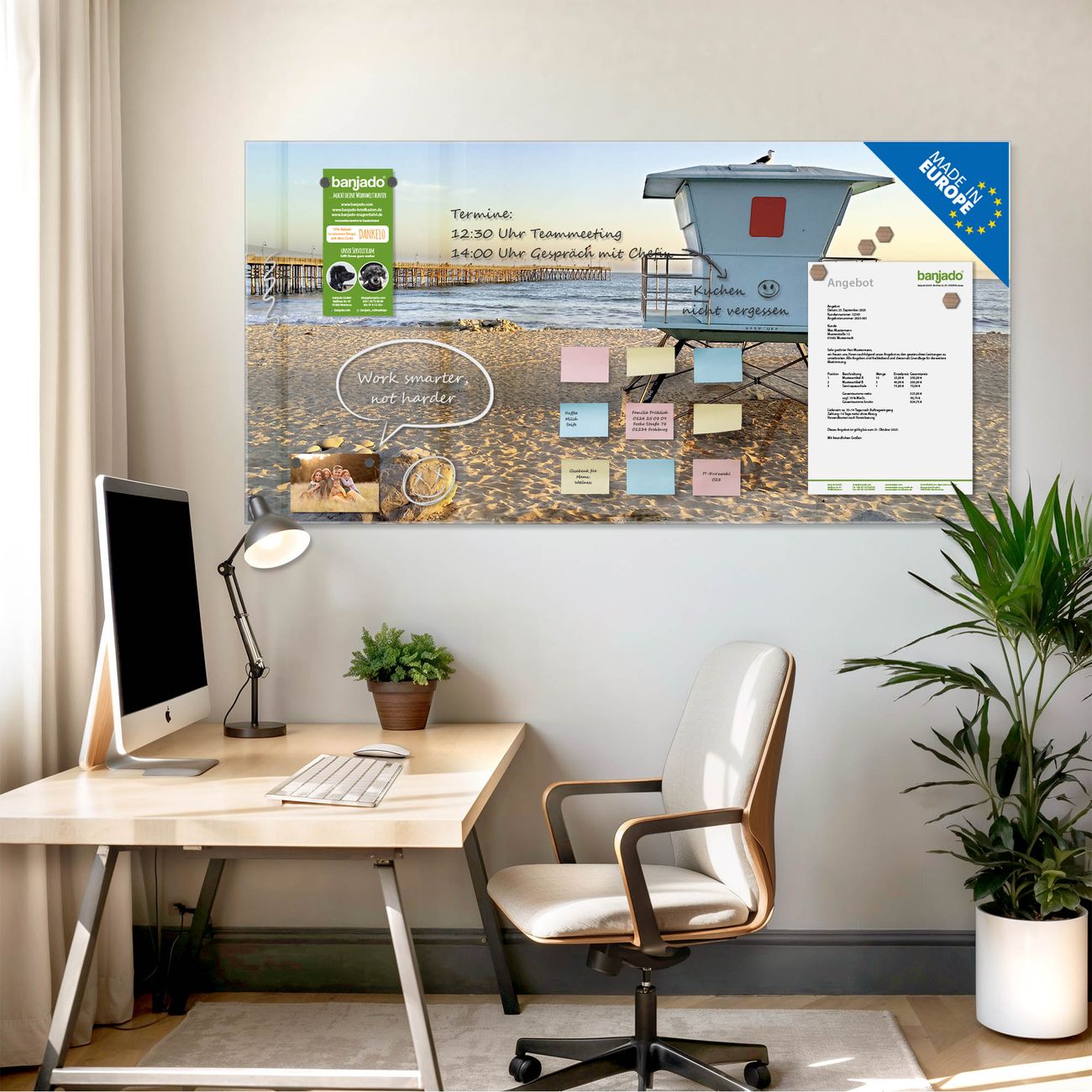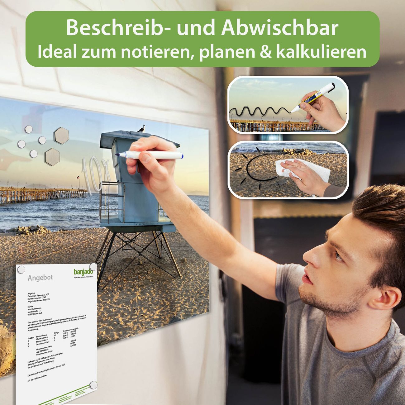 Jede Glas Magnettafel wird in unserer Werkstatt von Hand gefertigt und sorgfältig geprüft. So erhalten Sie ein echtes Qualitätsprodukt, das Funktion und Ästhetik perfekt vereint.?? Warum banjado?
