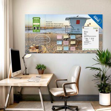 Auf der glatten Glasoberfläche lassen sich Termine, Rezepte oder Notizen ganz einfach mit Kreidestiften festhalten und rückstandslos entfernen. Starke Neodym-Magnete halten Ihre wichtigsten Erinnerungen sicher an Ort und Stelle. So entsteht Ihre ganz persönliche Ideenwand - jeden Tag neu.