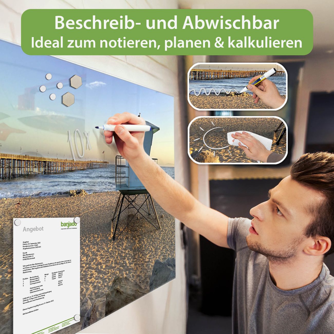 Jede Glas Magnettafel wird in unserer Werkstatt von Hand gefertigt und sorgfältig geprüft. So erhalten Sie ein echtes Qualitätsprodukt, das Funktion und Ästhetik perfekt vereint.?? Warum banjado?