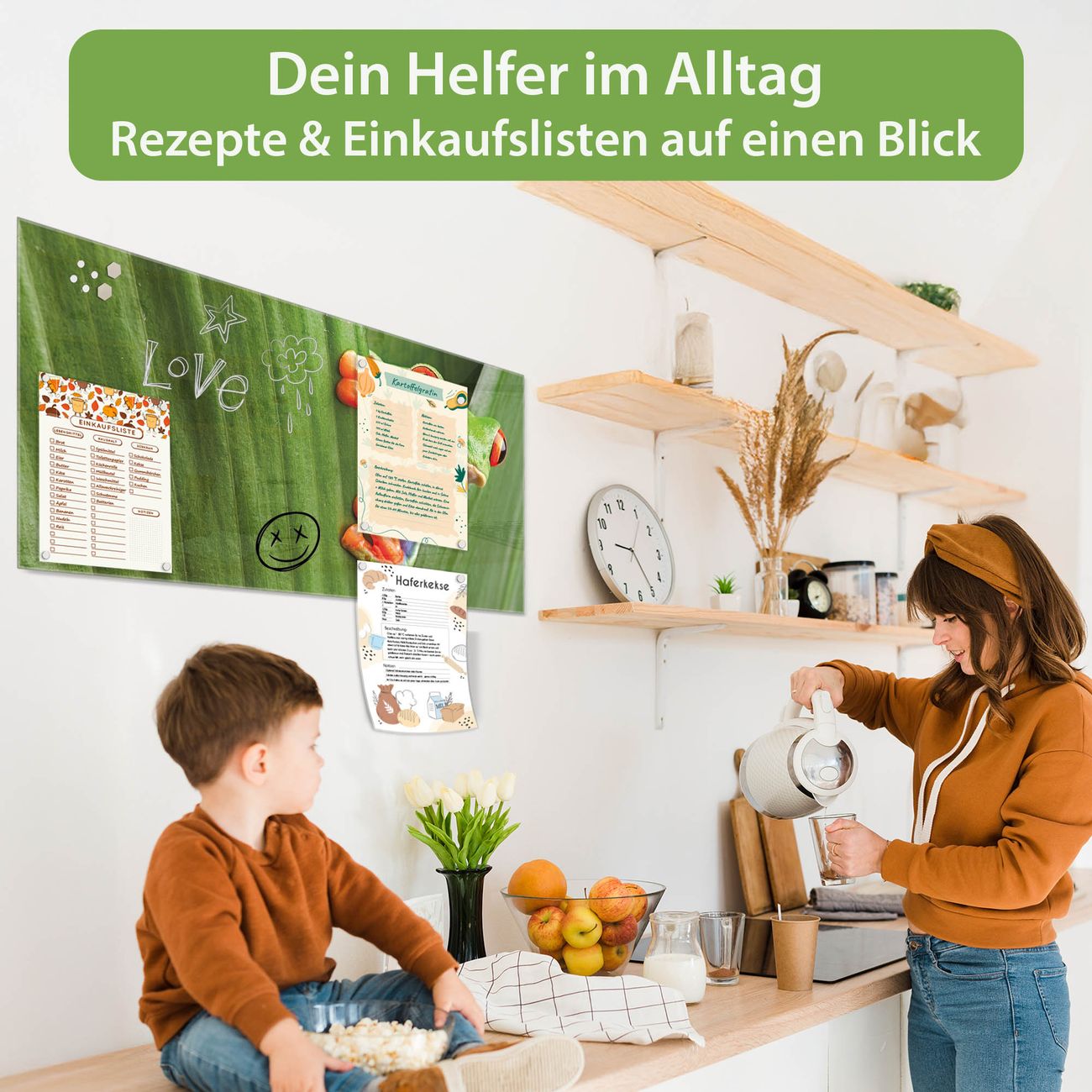 Auf der glatten Glasoberfläche lassen sich Termine, Rezepte oder Notizen ganz einfach mit Kreidestiften festhalten und rückstandslos entfernen. Starke Neodym-Magnete halten Ihre wichtigsten Erinnerungen sicher an Ort und Stelle. So entsteht Ihre ganz persönliche Ideenwand - jeden Tag neu.