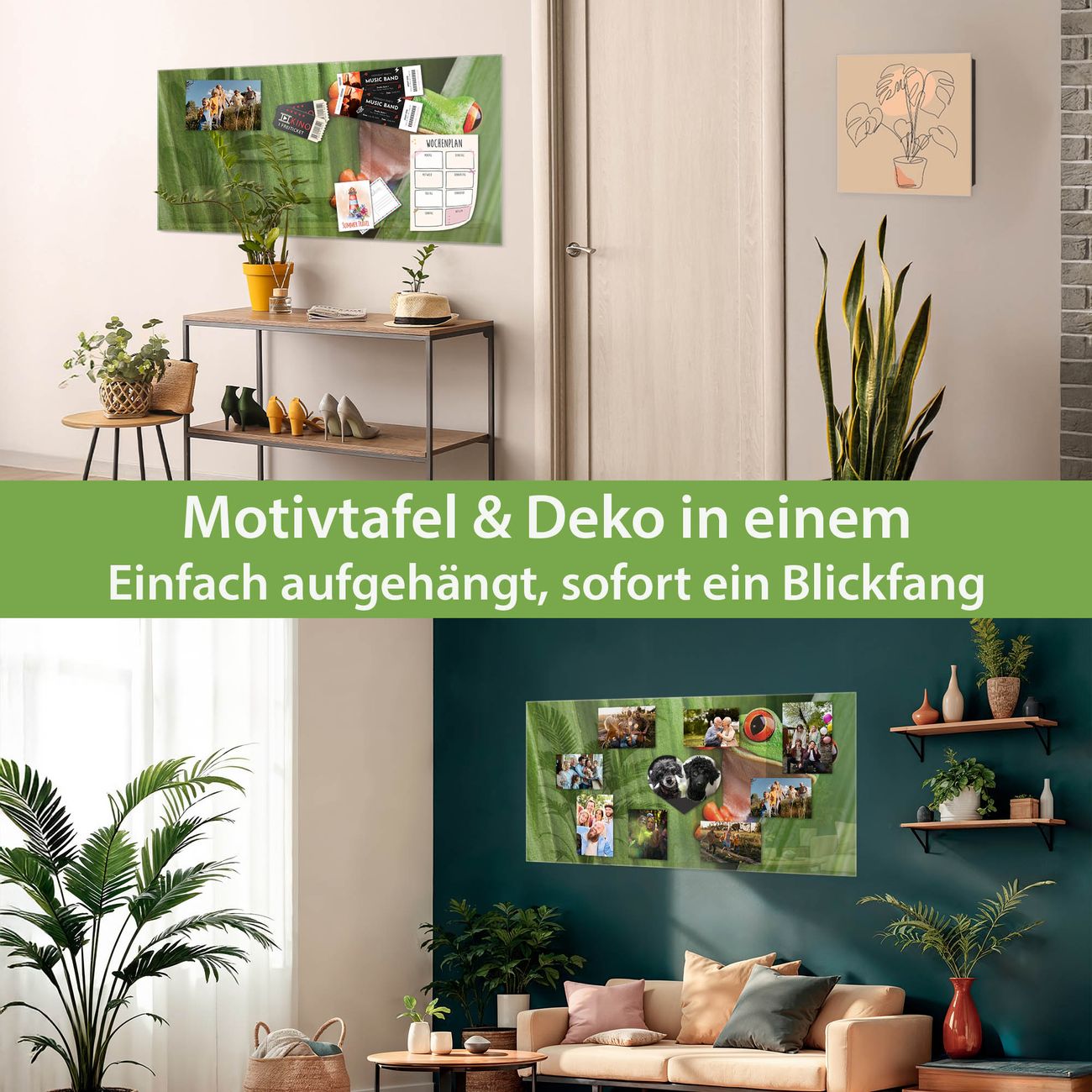 Dank der flachen Bauweise wirkt die Magnetwand fast schwebend an der Wand. Sie können sie mit Montagekleber elegant befestigen oder mit einem passenden Set klassisch verschrauben - beides sorgt für sicheren Halt und eine dezente Optik.