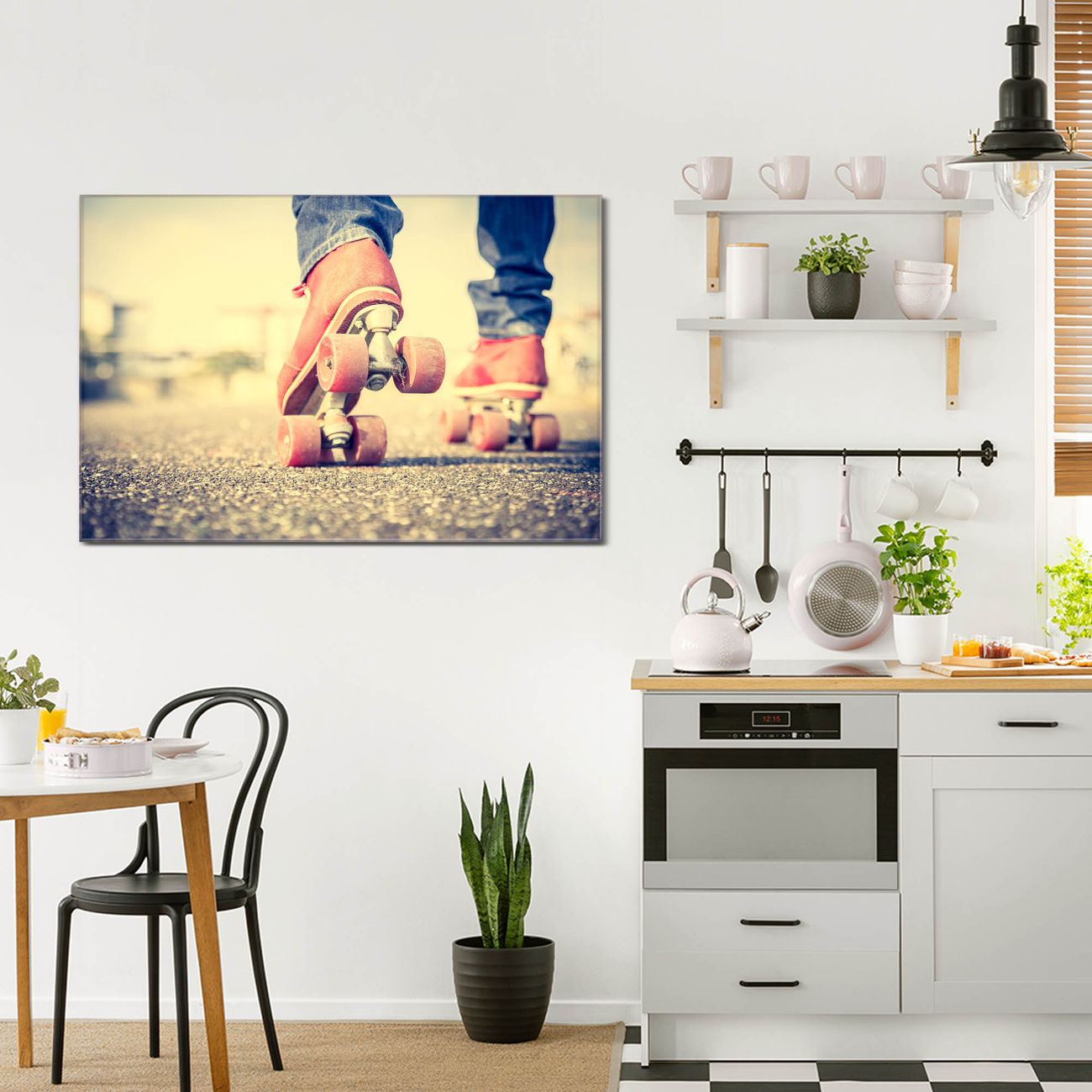 Glas Magnettafel im Querformat Rollschuhe