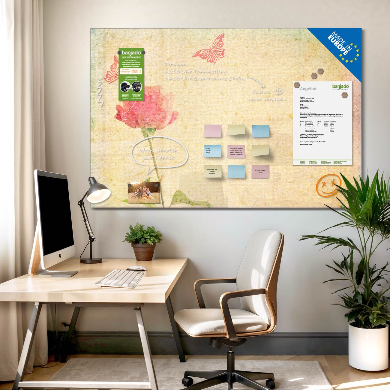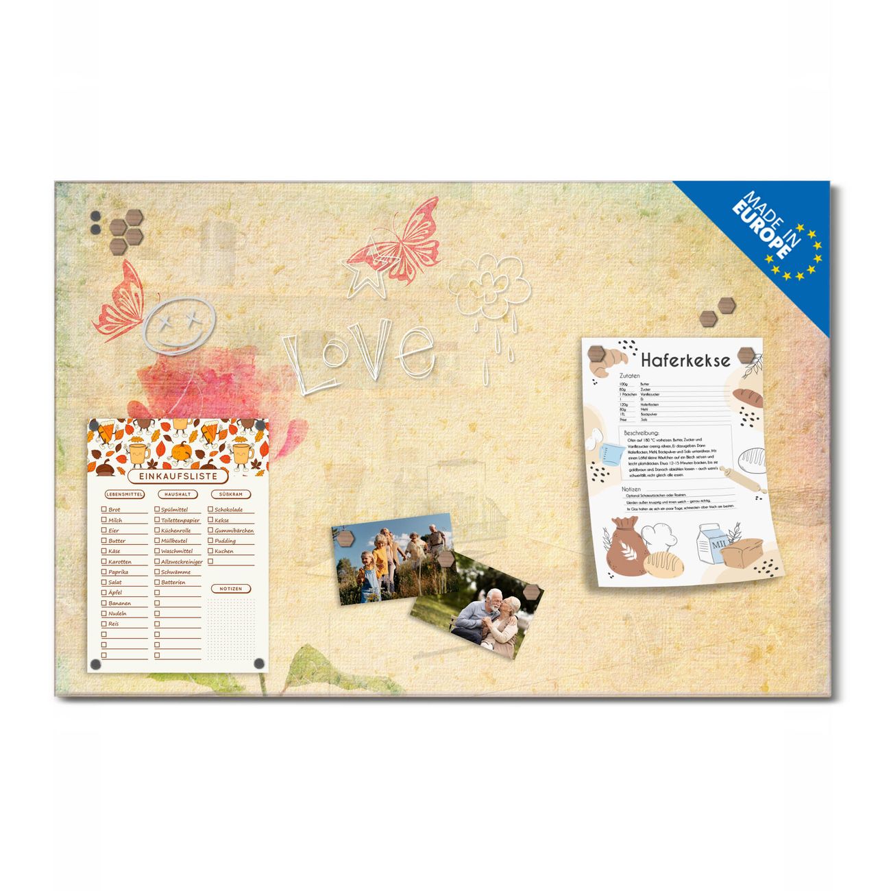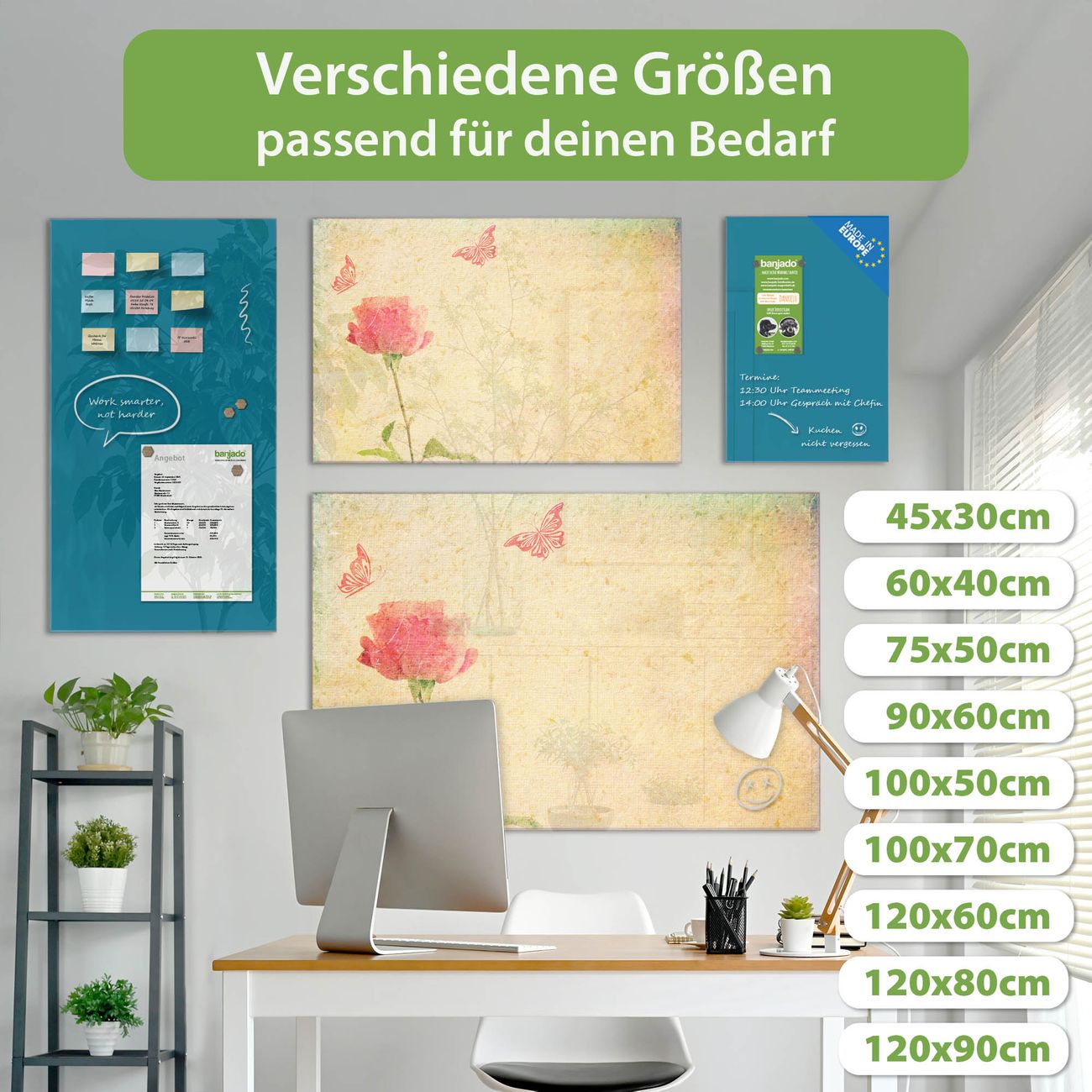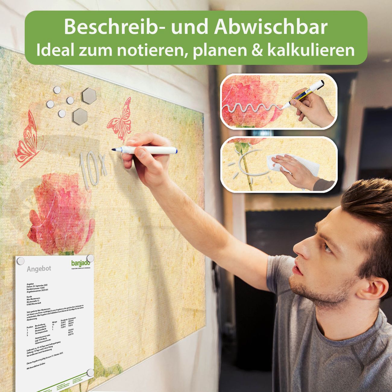 Die banjado Glas Magnettafel mit dem Motiv Motiv Romantik verbindet Funktionalität mit Stil. Sie ersetzt das Zettelchaos durch klare Strukturen und bringt dabei eine warme, natürliche Atmosphäre in Ihr Zuhause. Ob im Büro, in der Küche oder im Eingangsbereich - dieses Design-Board zieht Blicke an und sorgt für Ordnung mit Charakter.