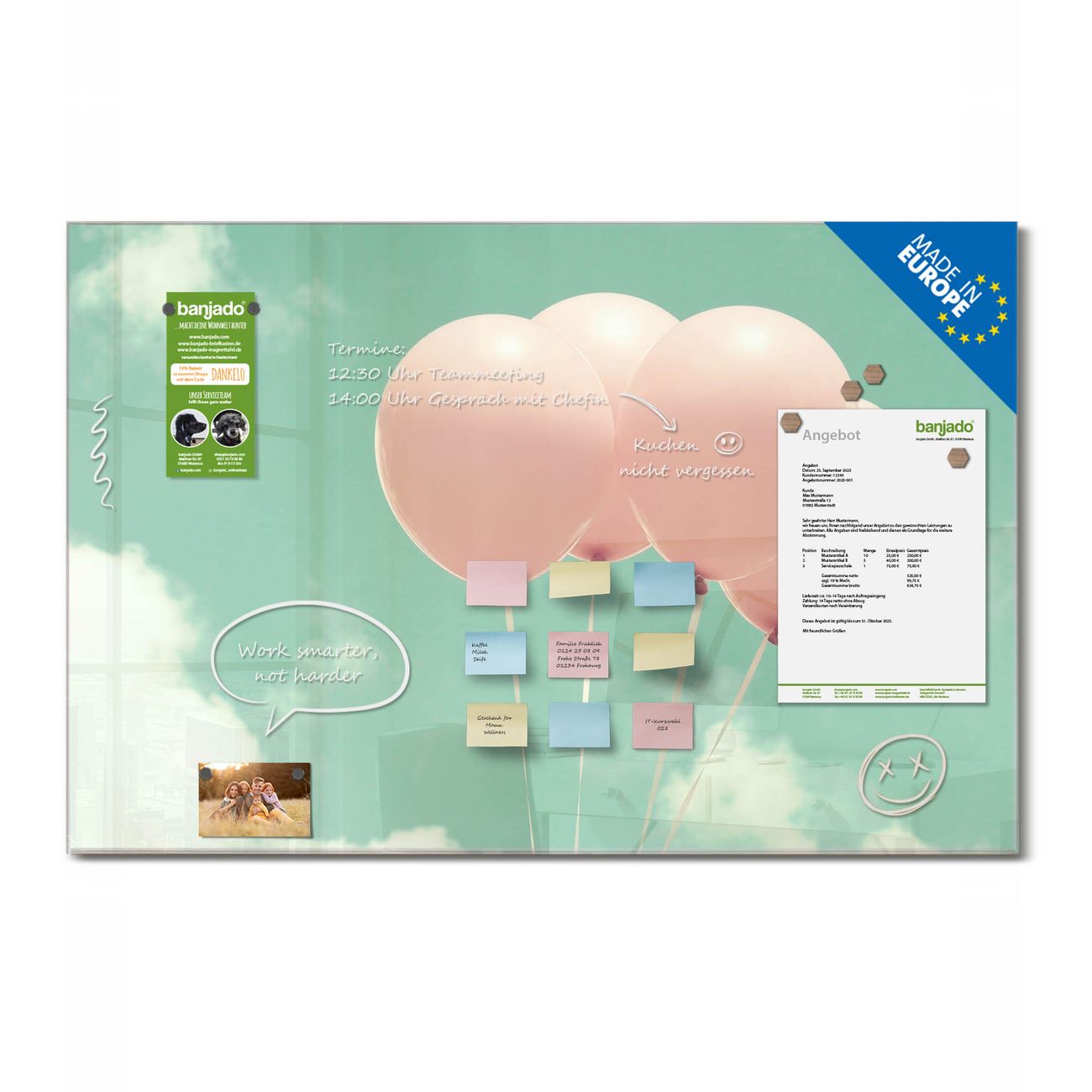 Glas Magnettafel im Querformat Motiv Rosa Ballons