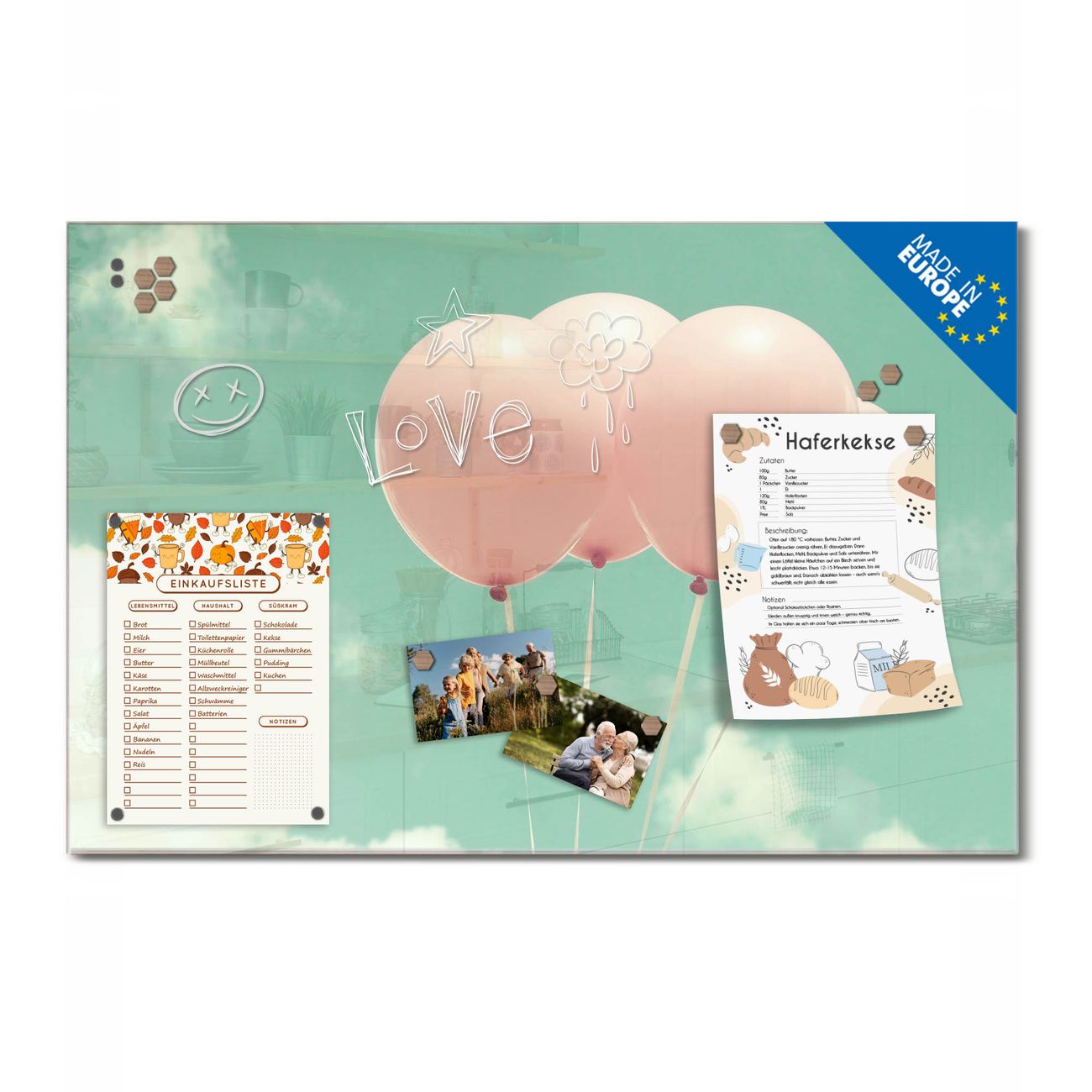 Glas Magnettafel im Querformat Motiv Rosa Ballons