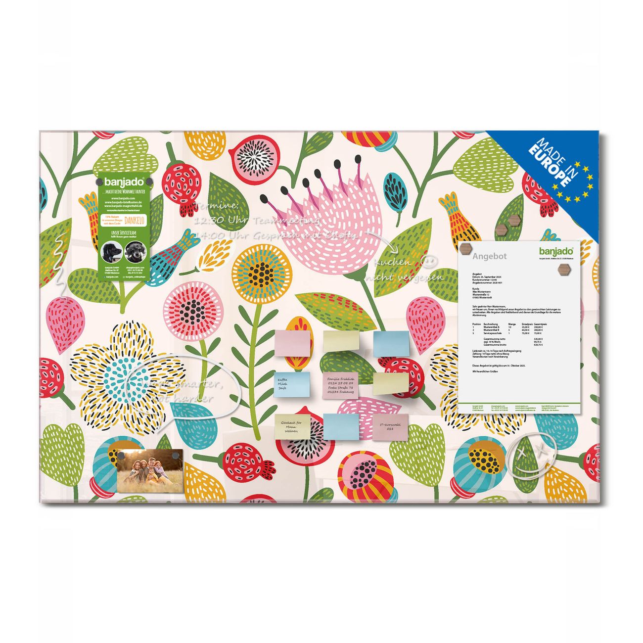 Jede Glas Magnettafel wird in unserer Werkstatt von Hand gefertigt und sorgfältig geprüft. So erhalten Sie ein echtes Qualitätsprodukt, das Funktion und Ästhetik perfekt vereint.?? Warum banjado?
