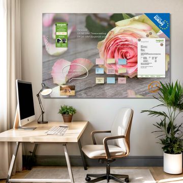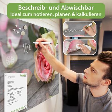 Die banjado Glas Magnettafel mit dem Motiv Motiv Rosa Rose verbindet Funktionalität mit Stil. Sie ersetzt das Zettelchaos durch klare Strukturen und bringt dabei eine warme, natürliche Atmosphäre in Ihr Zuhause. Ob im Büro, in der Küche oder im Eingangsbereich - dieses Design-Board zieht Blicke an und sorgt für Ordnung mit Charakter.
