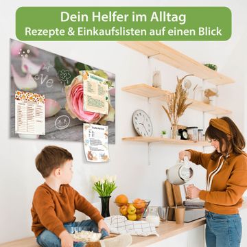 Auf der glatten Glasoberfläche lassen sich Termine, Rezepte oder Notizen ganz einfach mit Kreidestiften festhalten und rückstandslos entfernen. Starke Neodym-Magnete halten Ihre wichtigsten Erinnerungen sicher an Ort und Stelle. So entsteht Ihre ganz persönliche Ideenwand - jeden Tag neu.