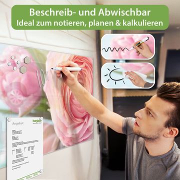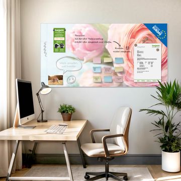 Auf der glatten Glasoberfläche lassen sich Termine, Rezepte oder Notizen ganz einfach mit Kreidestiften festhalten und rückstandslos entfernen. Starke Neodym-Magnete halten Ihre wichtigsten Erinnerungen sicher an Ort und Stelle. So entsteht Ihre ganz persönliche Ideenwand - jeden Tag neu.