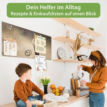 Auf der glatten Glasoberfläche lassen sich Termine, Rezepte oder Notizen ganz einfach mit Kreidestiften festhalten und rückstandslos entfernen. Starke Neodym-Magnete halten Ihre wichtigsten Erinnerungen sicher an Ort und Stelle. So entsteht Ihre ganz persönliche Ideenwand - jeden Tag neu.