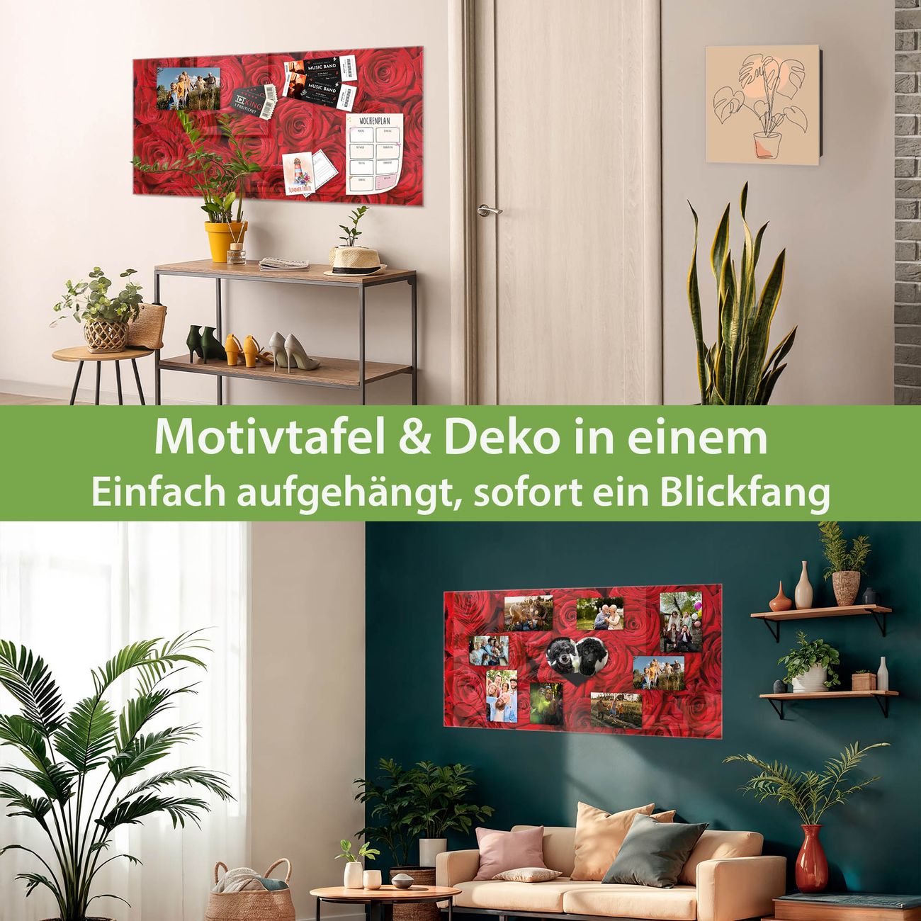 Die banjado Glas Magnettafel mit dem Motiv Motiv Rosenbett verbindet Funktionalität mit Stil. Sie ersetzt das Zettelchaos durch klare Strukturen und bringt dabei eine warme, natürliche Atmosphäre in Ihr Zuhause. Ob im Büro, in der Küche oder im Eingangsbereich - dieses Design-Board zieht Blicke an und sorgt für Ordnung mit Charakter.