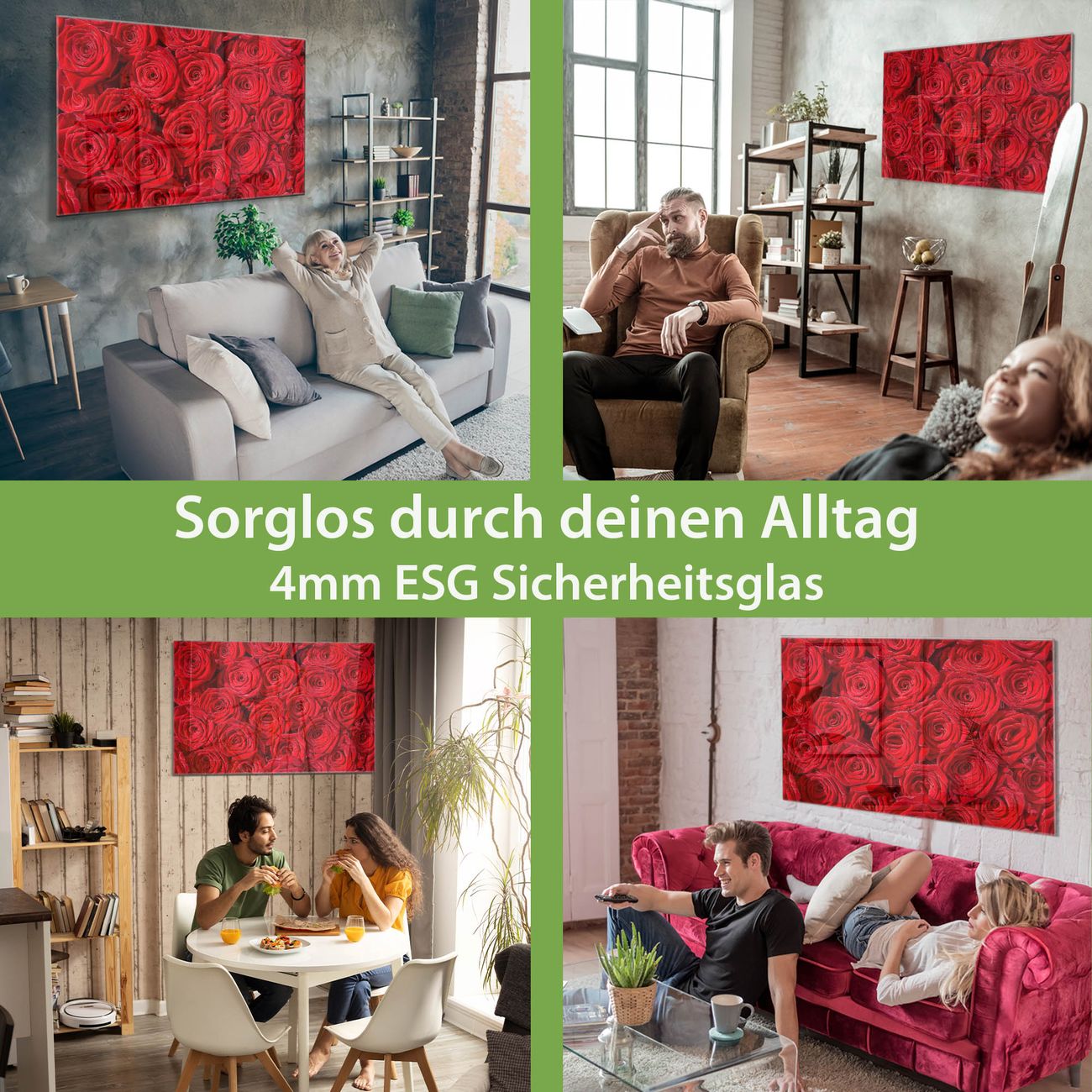 - Material: 4mm Sicherheitsglas mit Metallrückwand