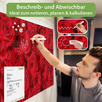 Die banjado Glas Magnettafel mit dem Motiv Motiv Rosenbett verbindet Funktionalität mit Stil. Sie ersetzt das Zettelchaos durch klare Strukturen und bringt dabei eine warme, natürliche Atmosphäre in Ihr Zuhause. Ob im Büro, in der Küche oder im Eingangsbereich - dieses Design-Board zieht Blicke an und sorgt für Ordnung mit Charakter.