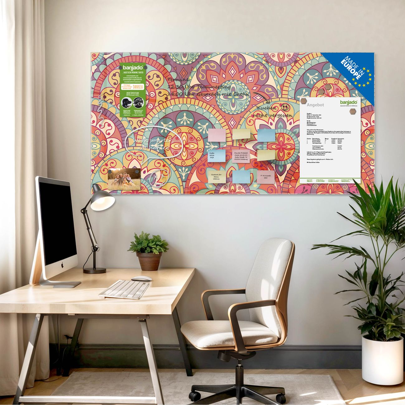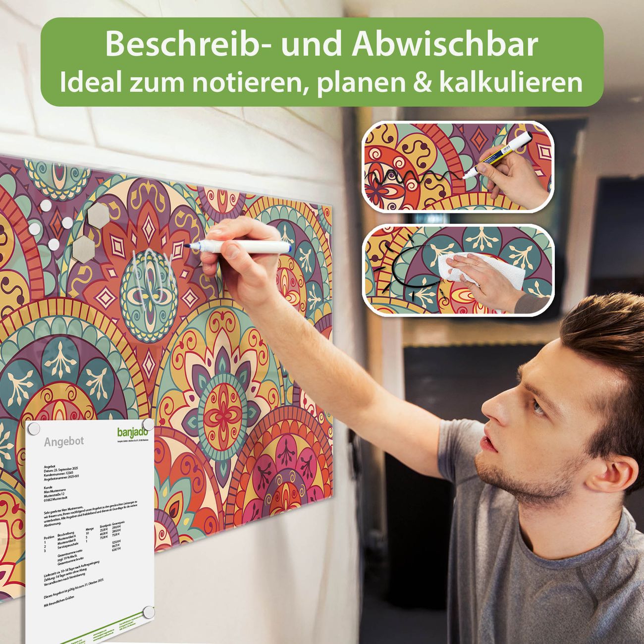 Die banjado Glas Magnettafel mit dem Motiv Motiv Rosetten verbindet Funktionalität mit Stil. Sie ersetzt das Zettelchaos durch klare Strukturen und bringt dabei eine warme, natürliche Atmosphäre in Ihr Zuhause. Ob im Büro, in der Küche oder im Eingangsbereich - dieses Design-Board zieht Blicke an und sorgt für Ordnung mit Charakter.