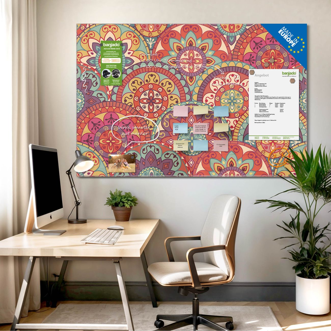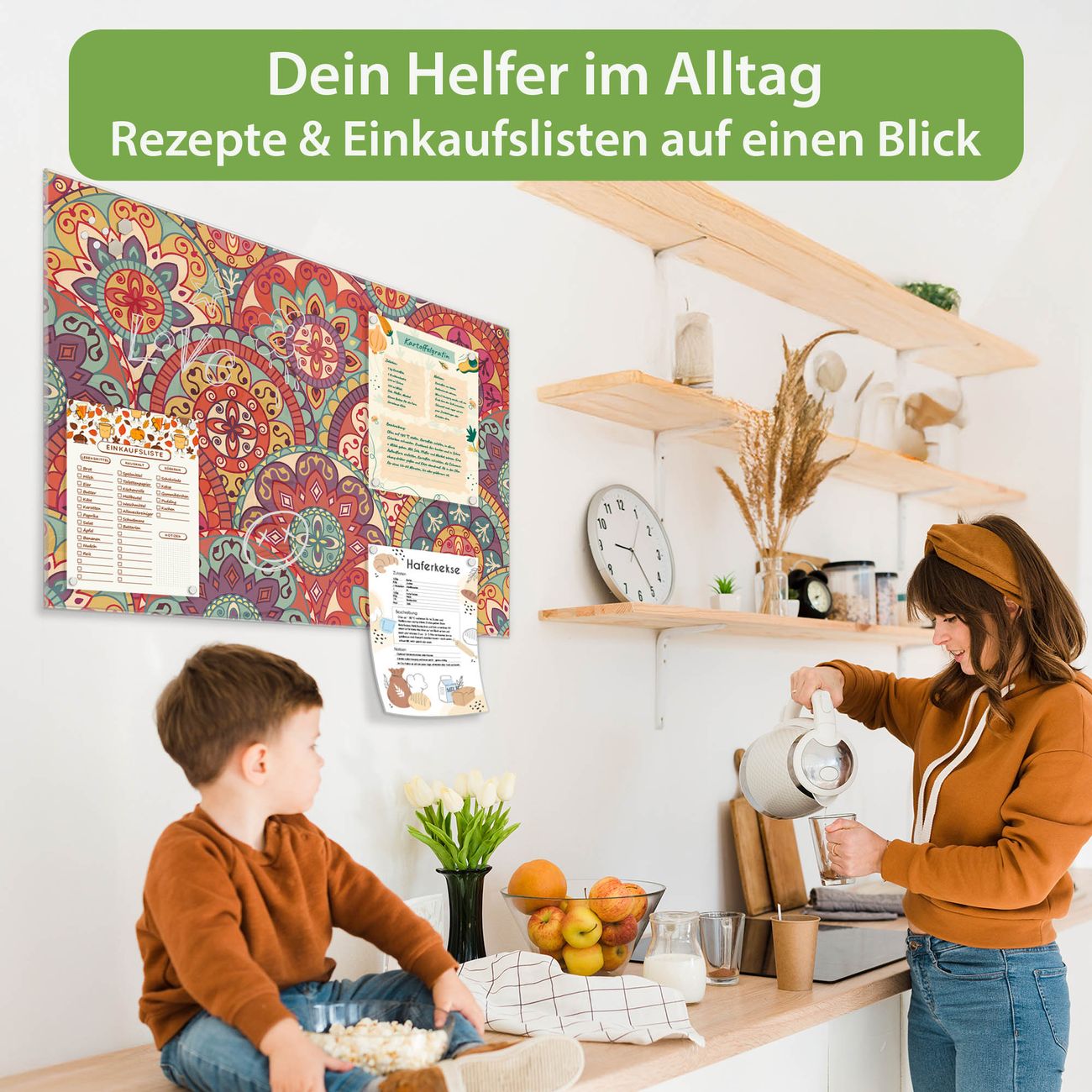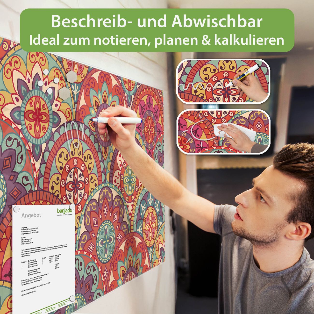 Die banjado Glas Magnettafel mit dem Motiv Motiv Rosetten verbindet Funktionalität mit Stil. Sie ersetzt das Zettelchaos durch klare Strukturen und bringt dabei eine warme, natürliche Atmosphäre in Ihr Zuhause. Ob im Büro, in der Küche oder im Eingangsbereich - dieses Design-Board zieht Blicke an und sorgt für Ordnung mit Charakter.