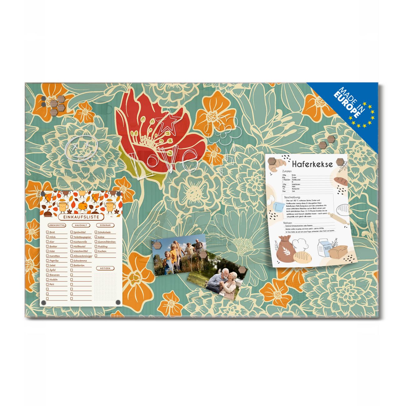 Ein Stück Design, das Ihren Alltag organisiert. Schreiben, heften, inspirieren - alles an einem Ort. Qualität, die man spürt. Montage leicht gemacht. Handwerk mit Herz - veredelt in Sachsen. Einzigartiges Design mit Motiv Motiv Rote Blumen Beschreibbare Glasoberfläche, leicht zu reinigen Starke Magnetkraft durch Stahlrückwand Inklusive 4 Neodym-Magneten Flexible Montageoptionen Handveredelt in Sachsen - Qualität, die bleibt