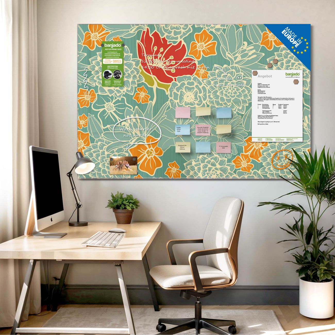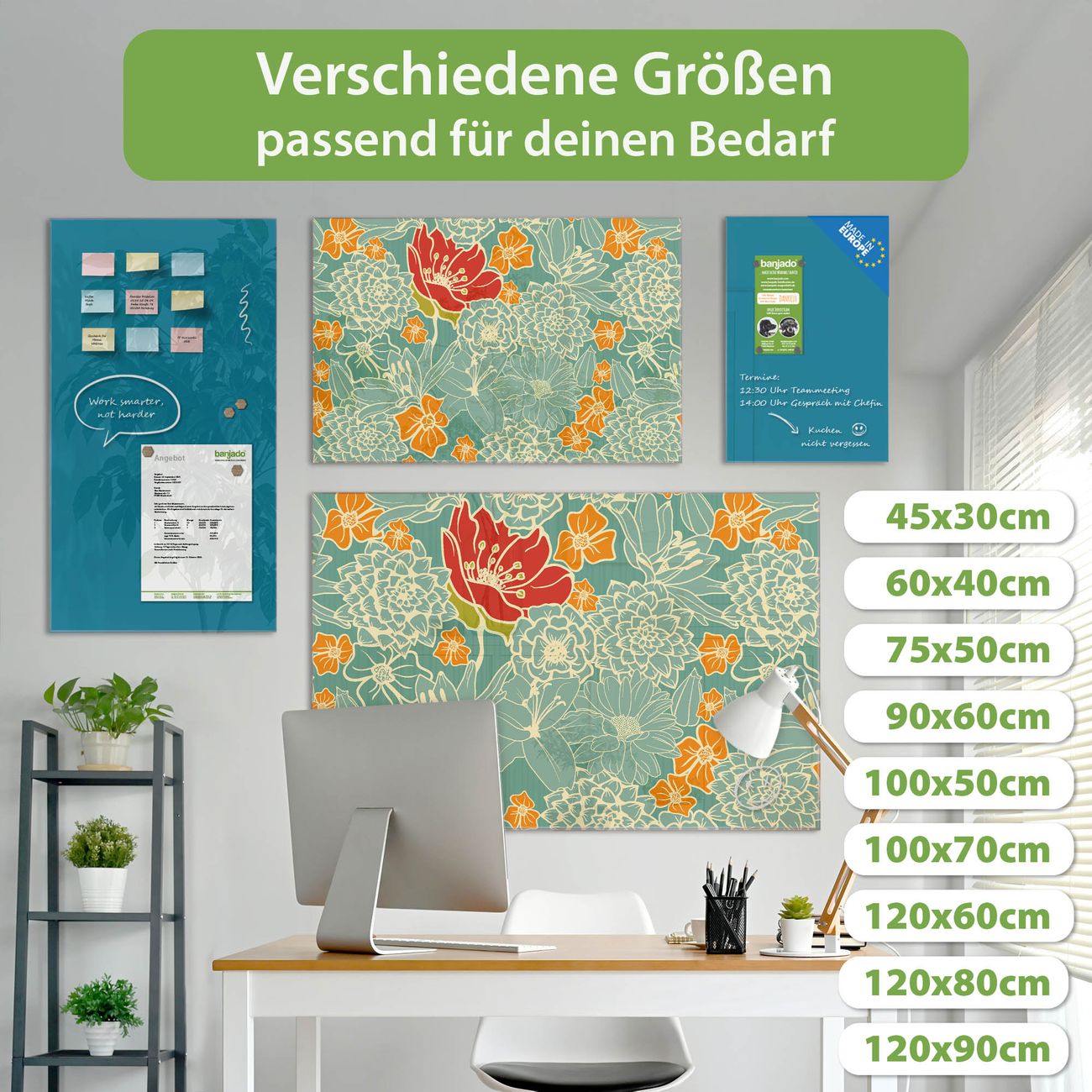Jede Glas Magnettafel wird in unserer Werkstatt von Hand gefertigt und sorgfältig geprüft. So erhalten Sie ein echtes Qualitätsprodukt, das Funktion und Ästhetik perfekt vereint.?? Warum banjado?