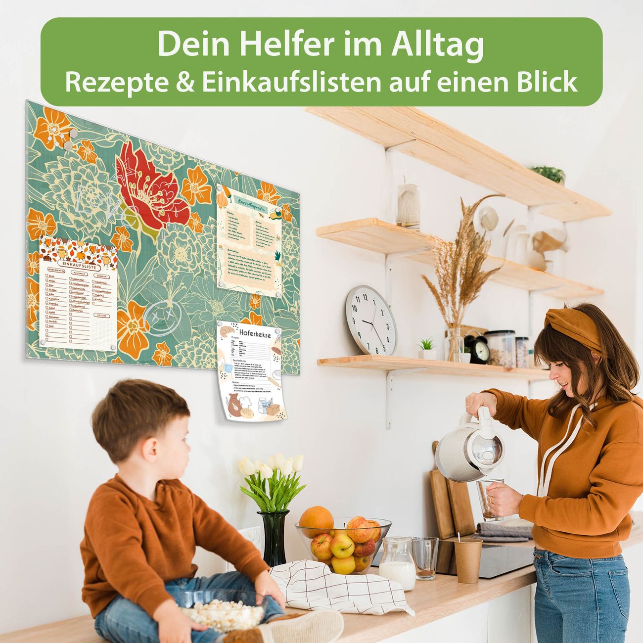 Auf der glatten Glasoberfläche lassen sich Termine, Rezepte oder Notizen ganz einfach mit Kreidestiften festhalten und rückstandslos entfernen. Starke Neodym-Magnete halten Ihre wichtigsten Erinnerungen sicher an Ort und Stelle. So entsteht Ihre ganz persönliche Ideenwand - jeden Tag neu.